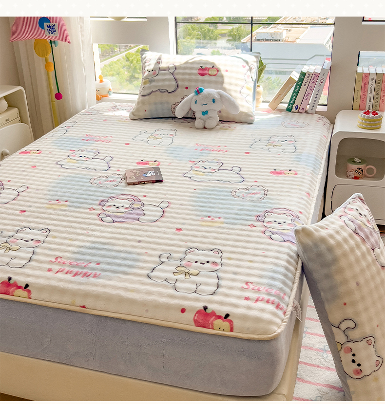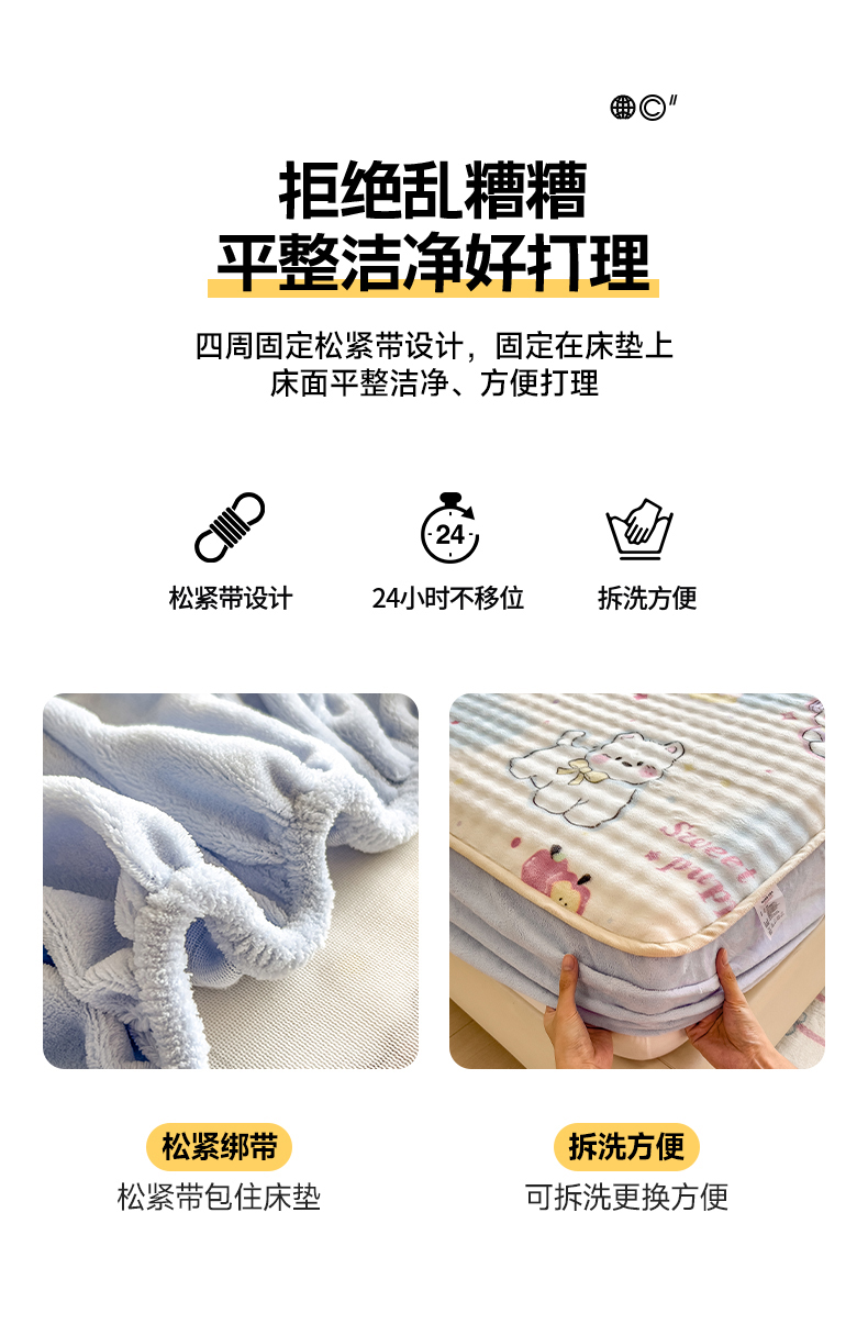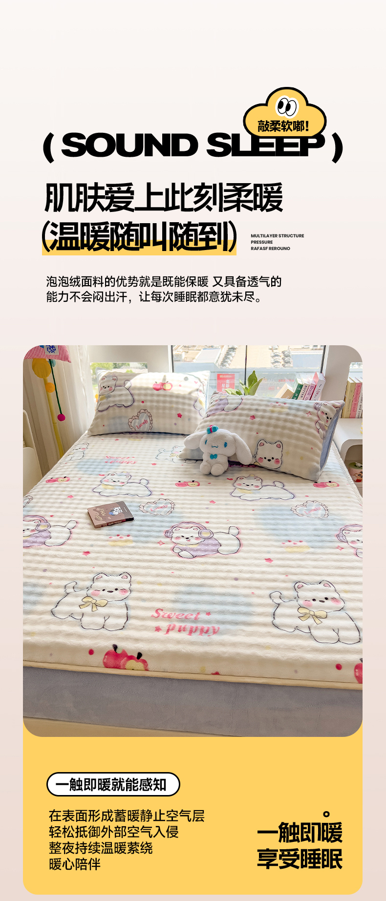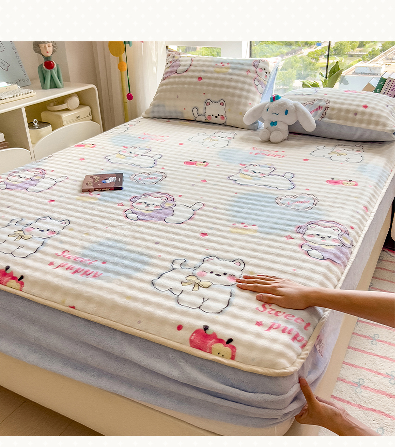 (总)摩妮卡 2025新款加厚保暖牛奶绒夹棉绣花床垫三件套,呆呆熊-蓝,呆呆熊-黄,呆呆熊-咖,Kitty猫-白,Kitty猫-粉,Kitty猫-紫