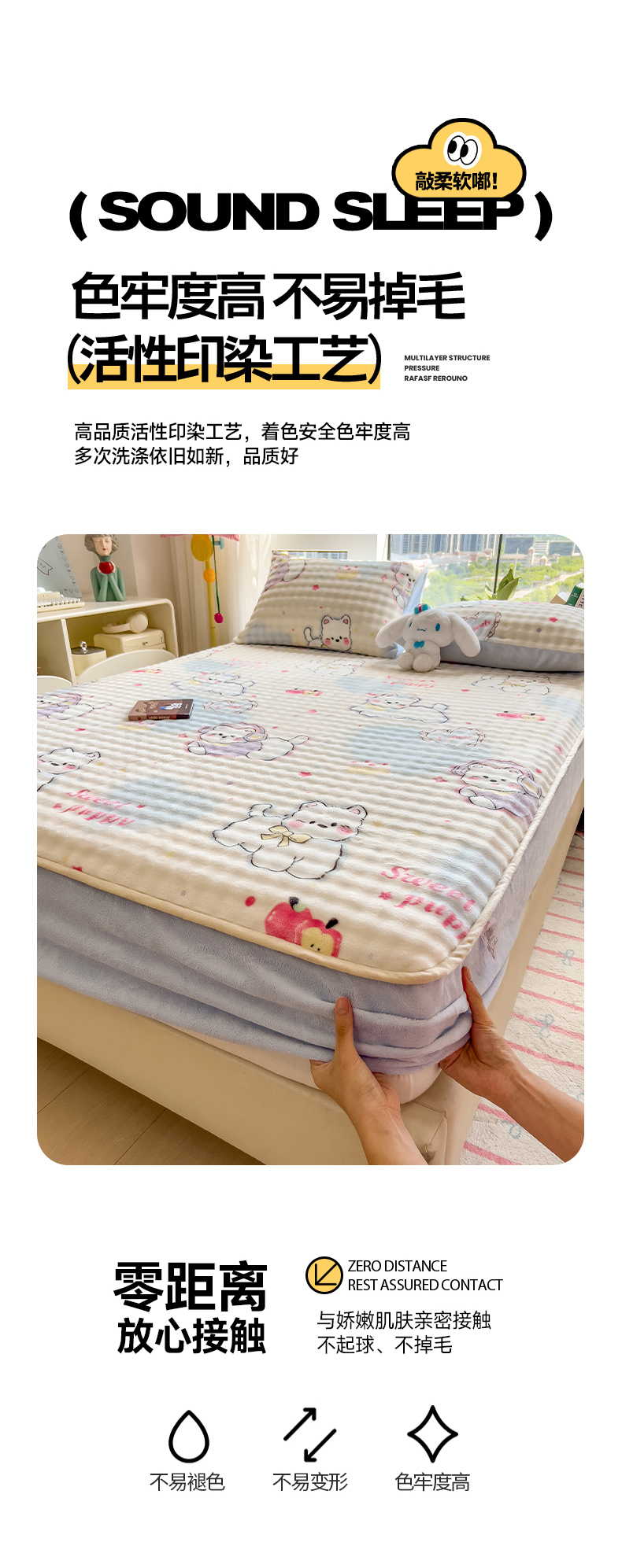 当前位置: 91家纺网 > 商品网购 > 床上用品 > 床笠 > 摩妮卡 2025新款加厚牛奶绒泡泡绒床笠三件套 音乐猫咪