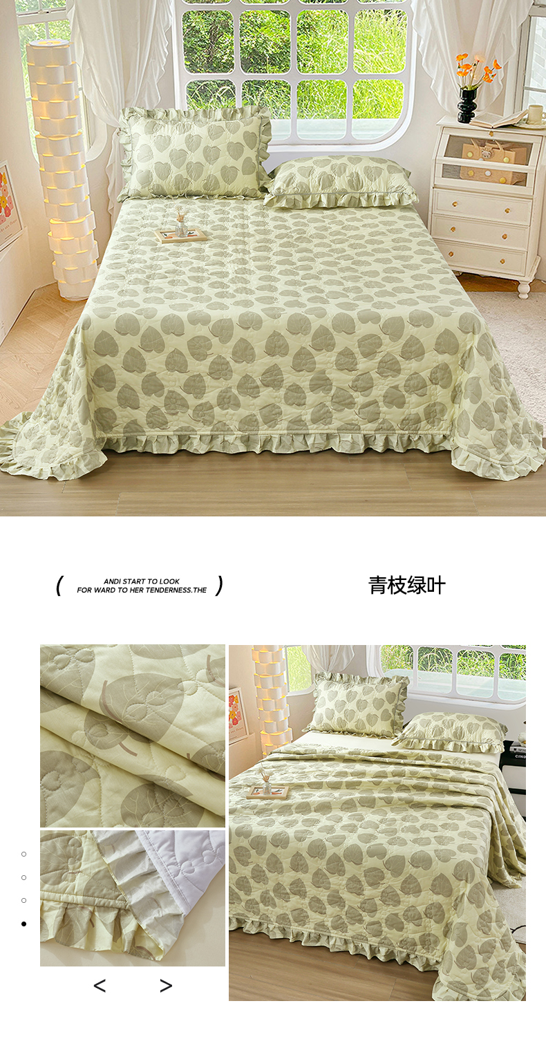 (总)益利多 2025新款130*70全棉斜纹夹棉绗缝小花边床盖纯棉加厚床盖三件套