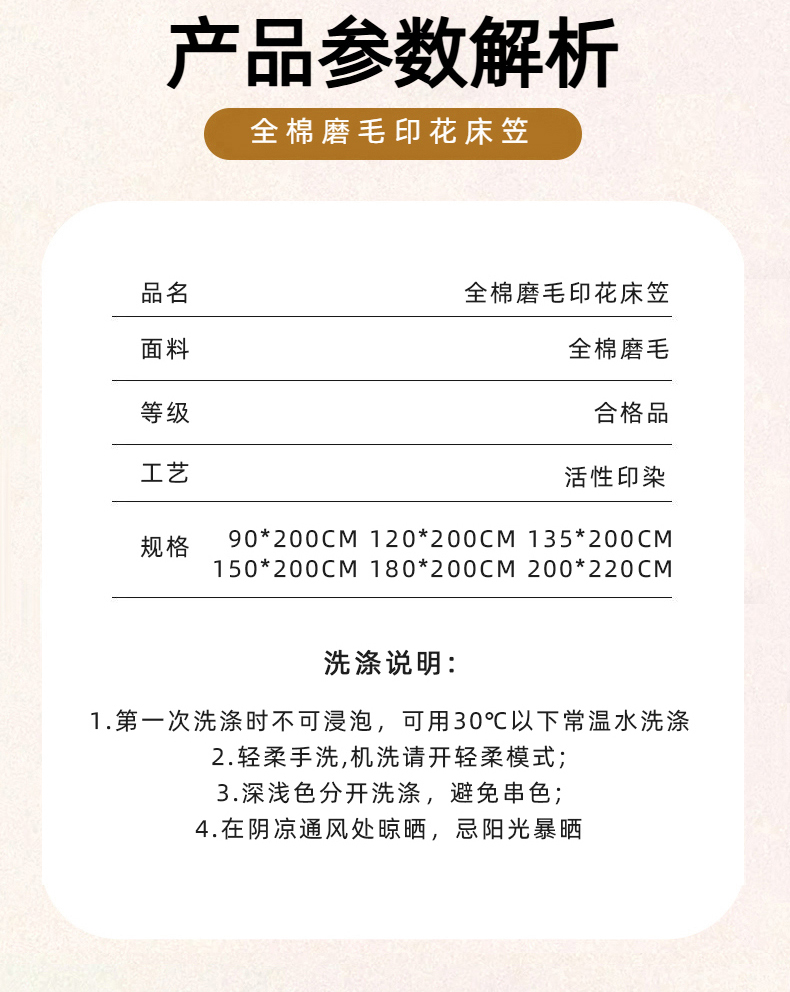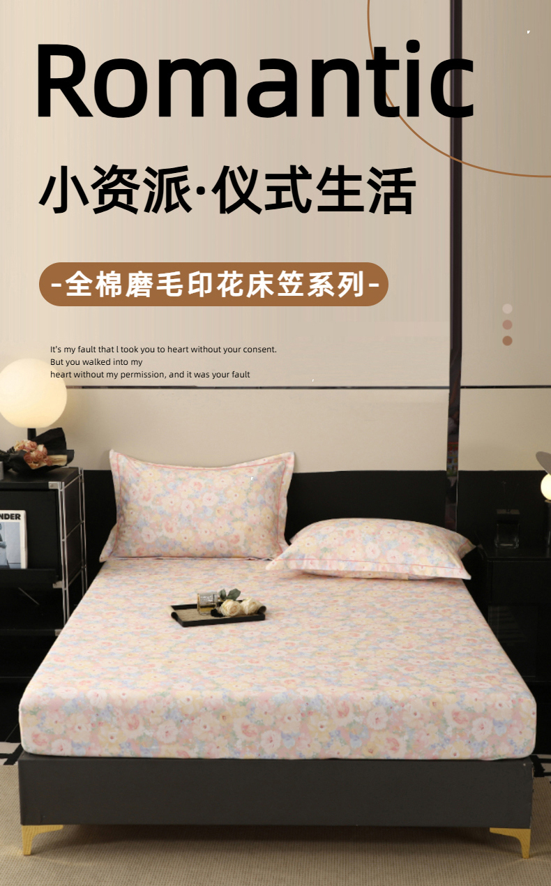商品名称:金盛纺 2025新款全棉纯棉加厚磨毛印花单品床笠 床笠单件 旺趣
