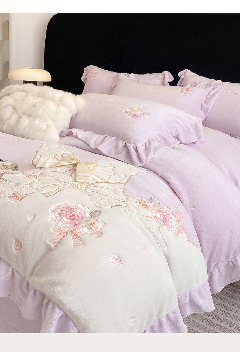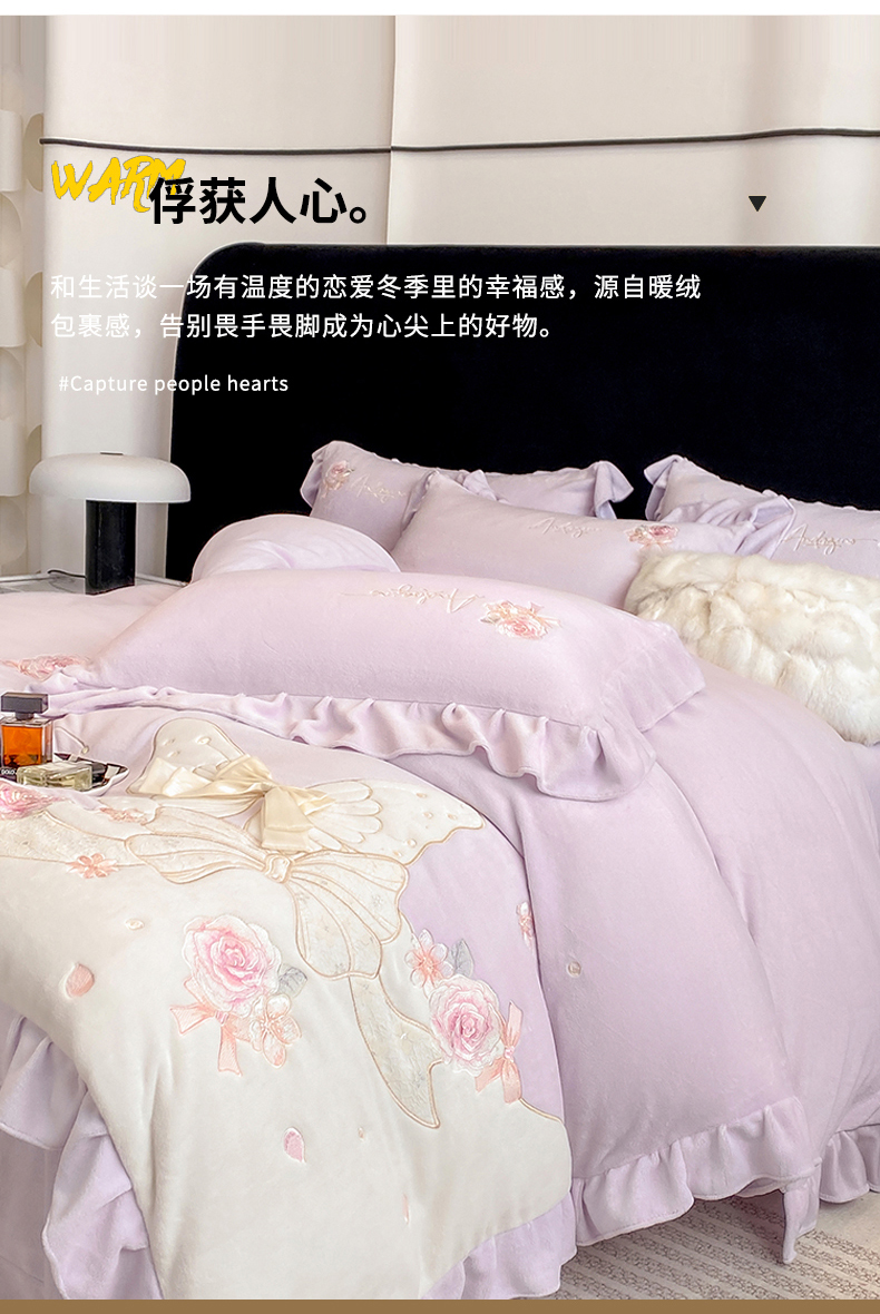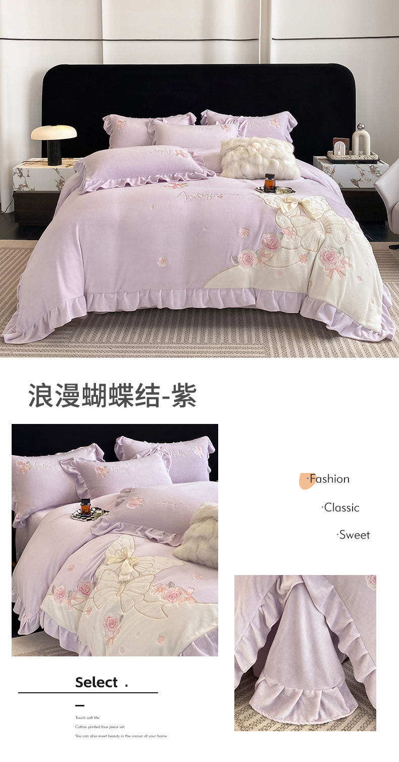 当前位置: 91家纺网 > 商品网购 > 床品套件 > 四件套 > 牛奶绒四件套 > (总)绒棉世家 2025秋冬新款A类牛奶绒宝宝绒刺绣韩版系列-浪漫蝴蝶结