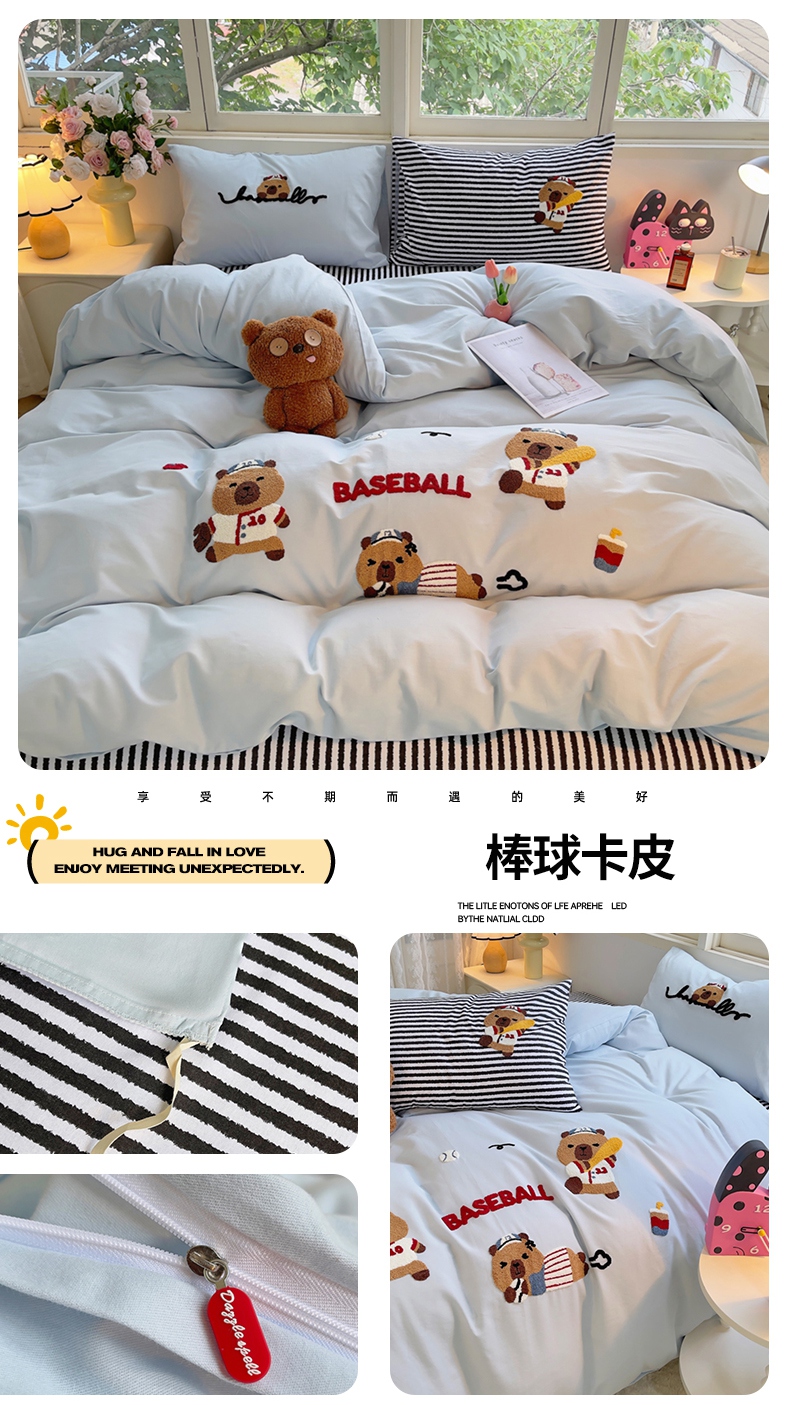 (总)炫拼家纺 2025新款全棉磨毛卡通毛巾绣加厚纯棉四件套-可梦系列