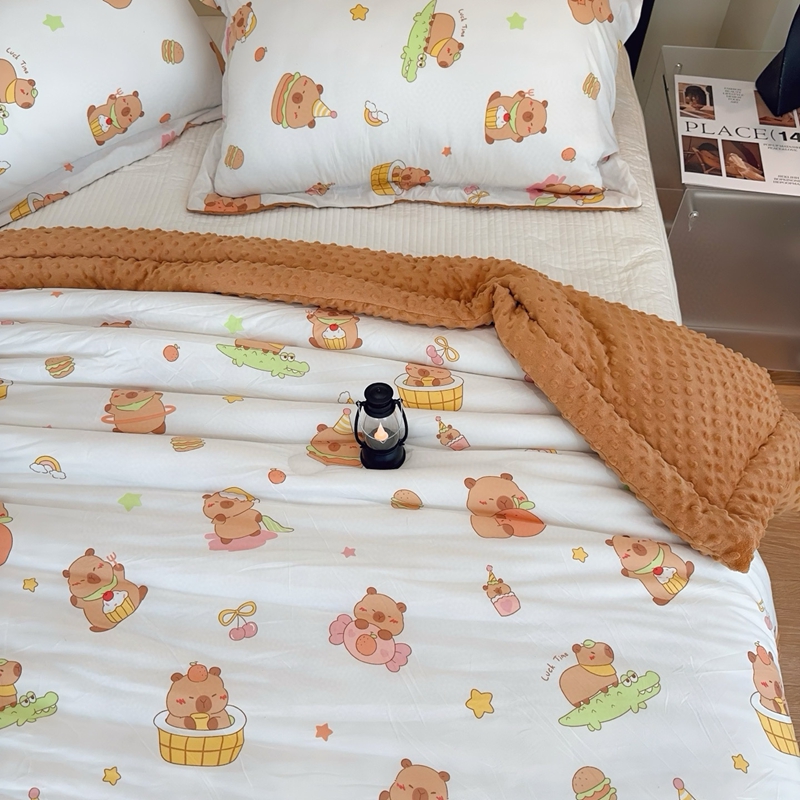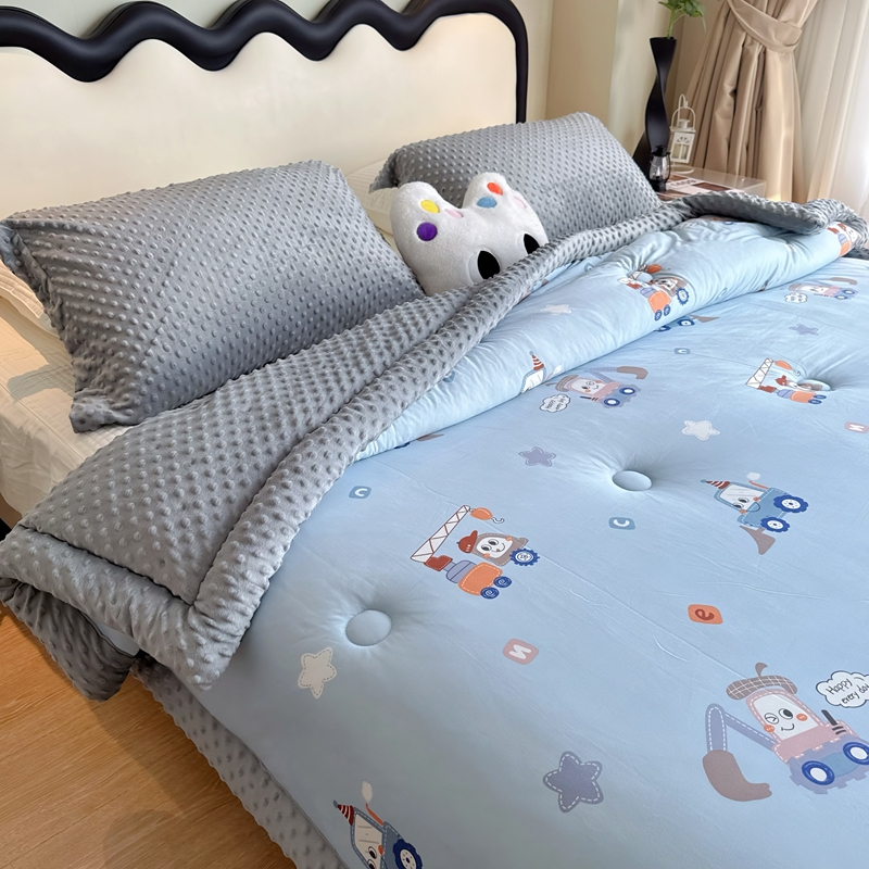 (总)兜米家居 2025新品秋冬母婴针织豆豆绒被纯手工包边卡通立体豆豆绒保暖被子被芯,滑板恐龙,巴拉小熊,花海,花花兔,花小象,幻境,可爱兔子,拉兔兔,兰花小狮子,萌宠小狗,喵喵,小碎花