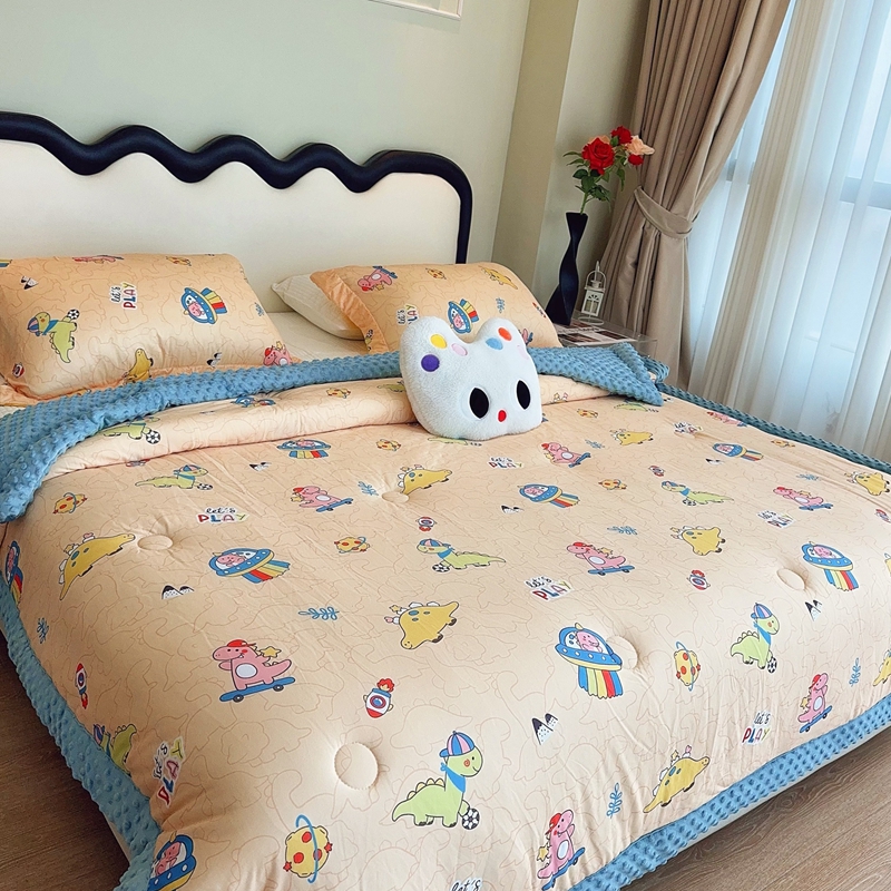 商品名称:兜米家居 2025新款针织豆豆绒被纯手工包边卡通立体豆豆绒保暖被被子被芯 滑板恐龙