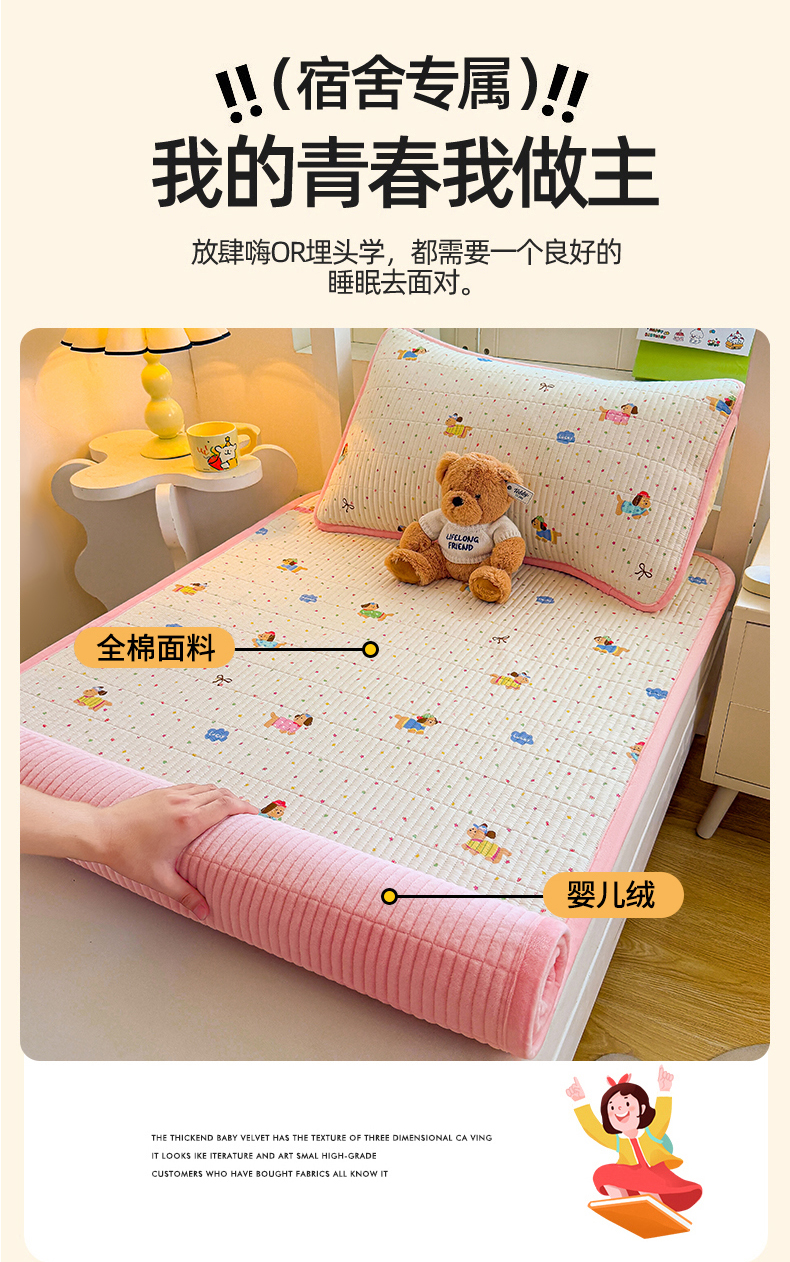 (总)梵朴 2025新款牛奶绒泡泡兔毛绒床垫学生宿舍床褥子床护垫学生款印花系列,爱心蝴蝶结绿,彩虹爱心紫,彩虹哈皮狗,繁星,黄油小熊,咖底蛋糕熊,蕾丝蝴蝶结紫,梦幻太空人,趴趴熊,顽皮小熊猫,星黛露粉,星星小熊灰,音乐狗蓝,云纹爱心粉,组合图仅供参考不可下单