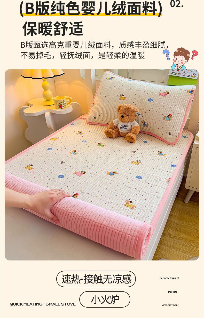 • 91家纺网 家纺一手货源 找家纺 (总)梵朴 2025新款牛奶绒泡泡兔毛绒床垫学生宿舍床褥子床护垫(大床款印花系列)-场景二,爱心蝴蝶结绿,彩虹爱心紫,彩虹哈皮狗,繁星,黄油小熊,咖底蛋糕熊,蕾丝蝴蝶结紫,梦幻太空人,趴趴熊,顽皮小熊猫,星黛露粉,星星小熊灰,音乐狗蓝--,云纹爱心粉