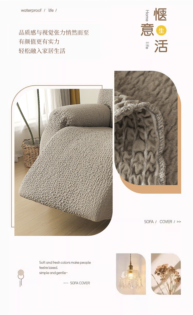 (总)千彤沙发垫 2022新款提花自由生活系列弹力沙发套,豆绿,米黄,深灰,水蓝,银灰,紫色