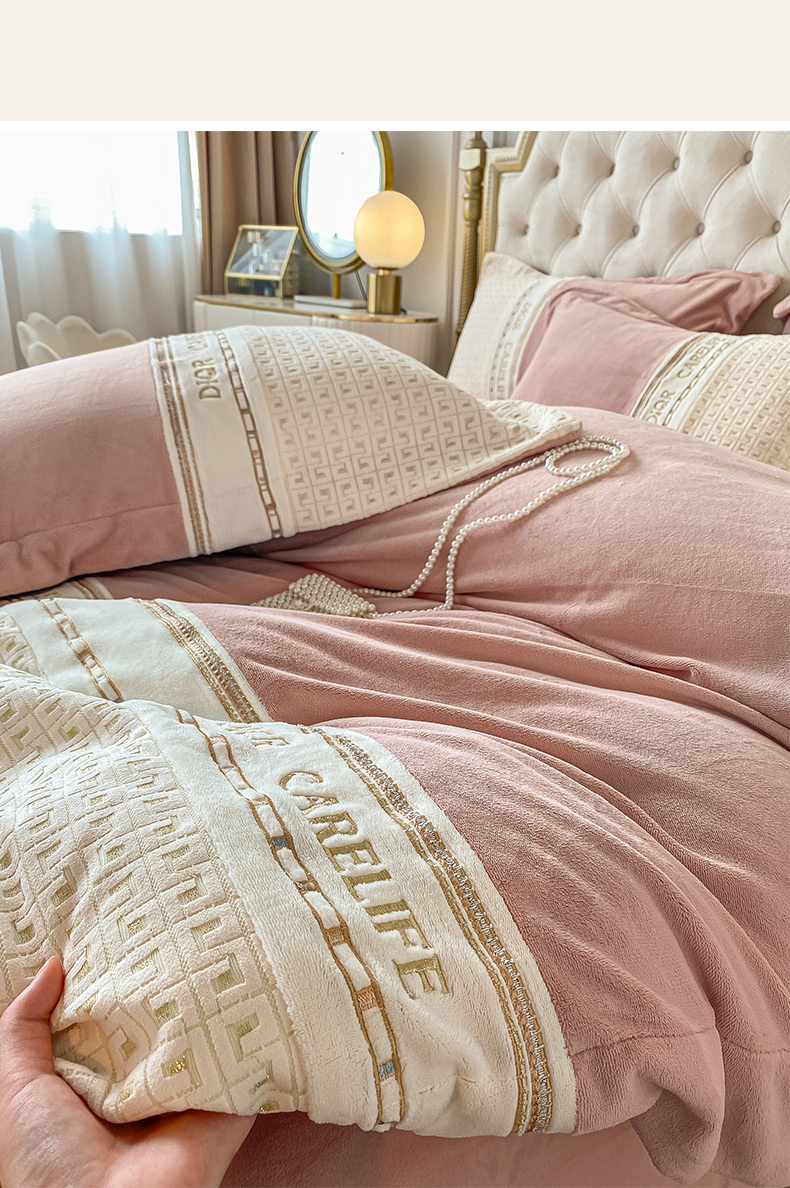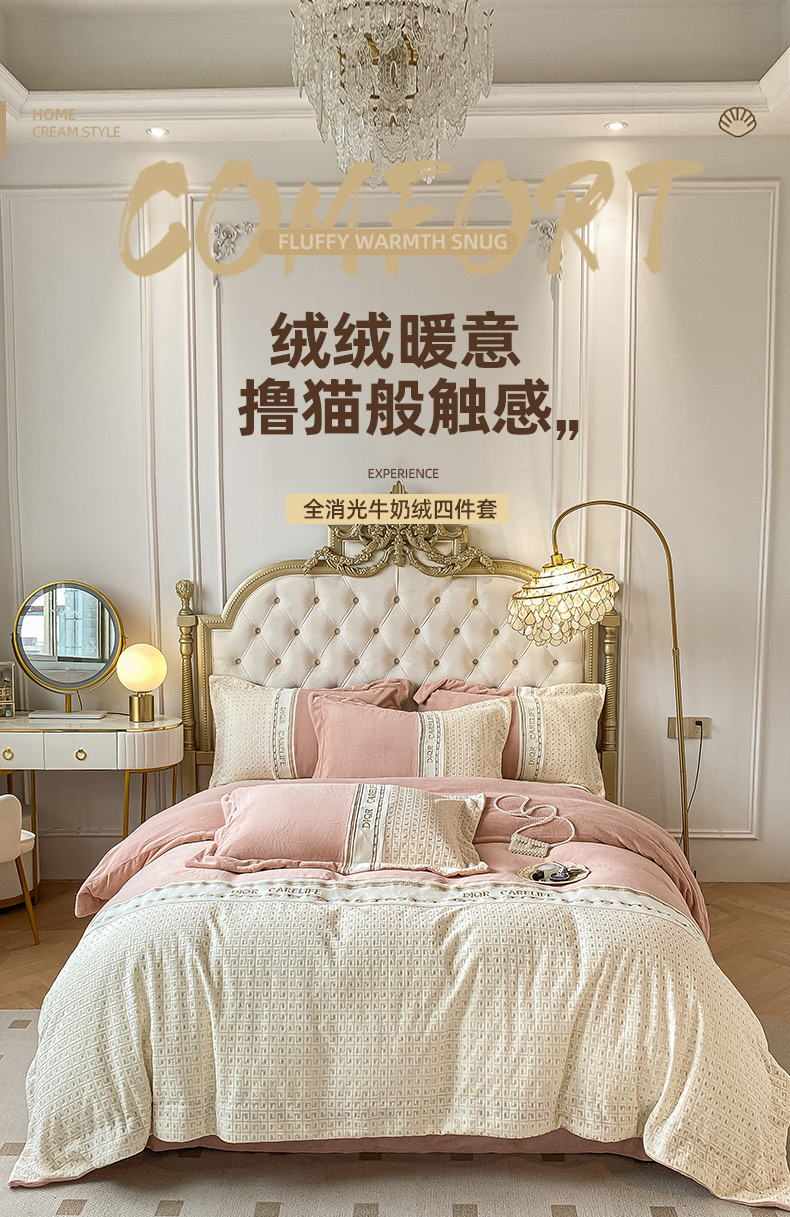 商品名称:ab家纺 2025新款邂逅高克重牛奶绒四件套 邂逅藕粉