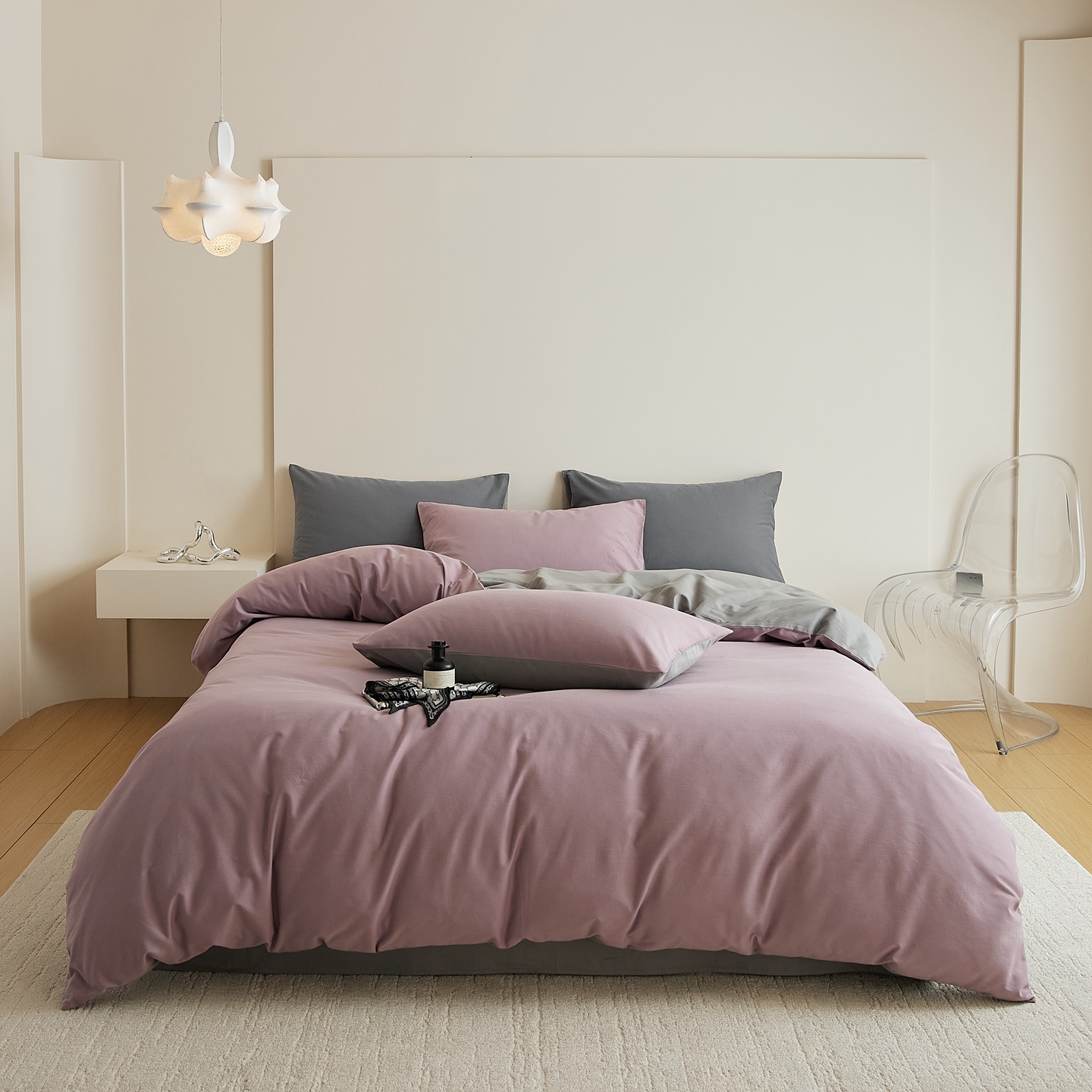 当前位置: 91家纺网 > 商品网购 > 床品套件 > 四件套 > 全棉普通四件套 > 禾时 2025新款A类全棉纯棉贡缎磨毛双拼色四件套 紫调