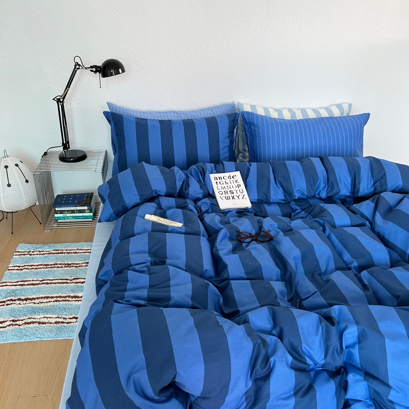 当前位置: 91家纺网 > 商品网购 > 床品套件 > 四件套 > 全棉普通四件套 > 蜜宿 2025新款亲肤舒适混搭条纹全棉纯棉斜纹四件套-蓝调冰岛 蓝调冰岛(月光蓝条+冰川蓝条)
