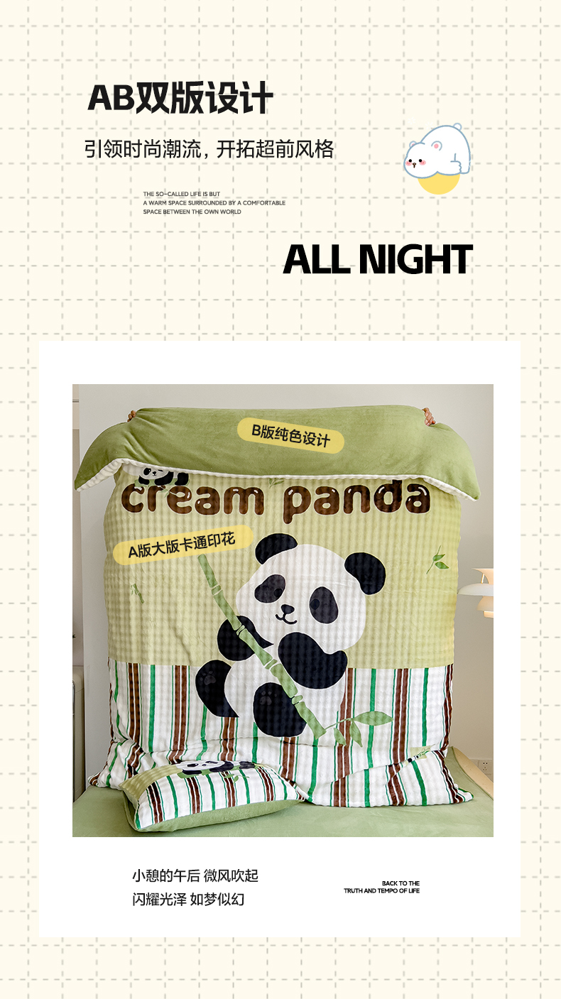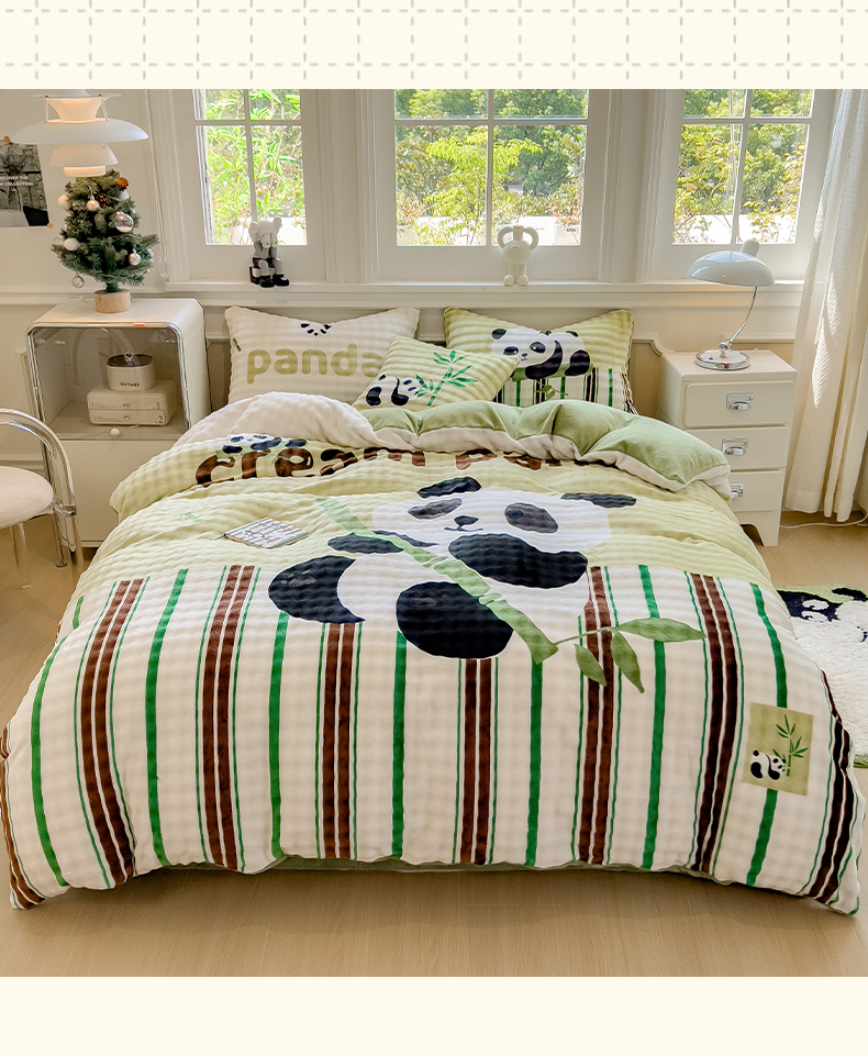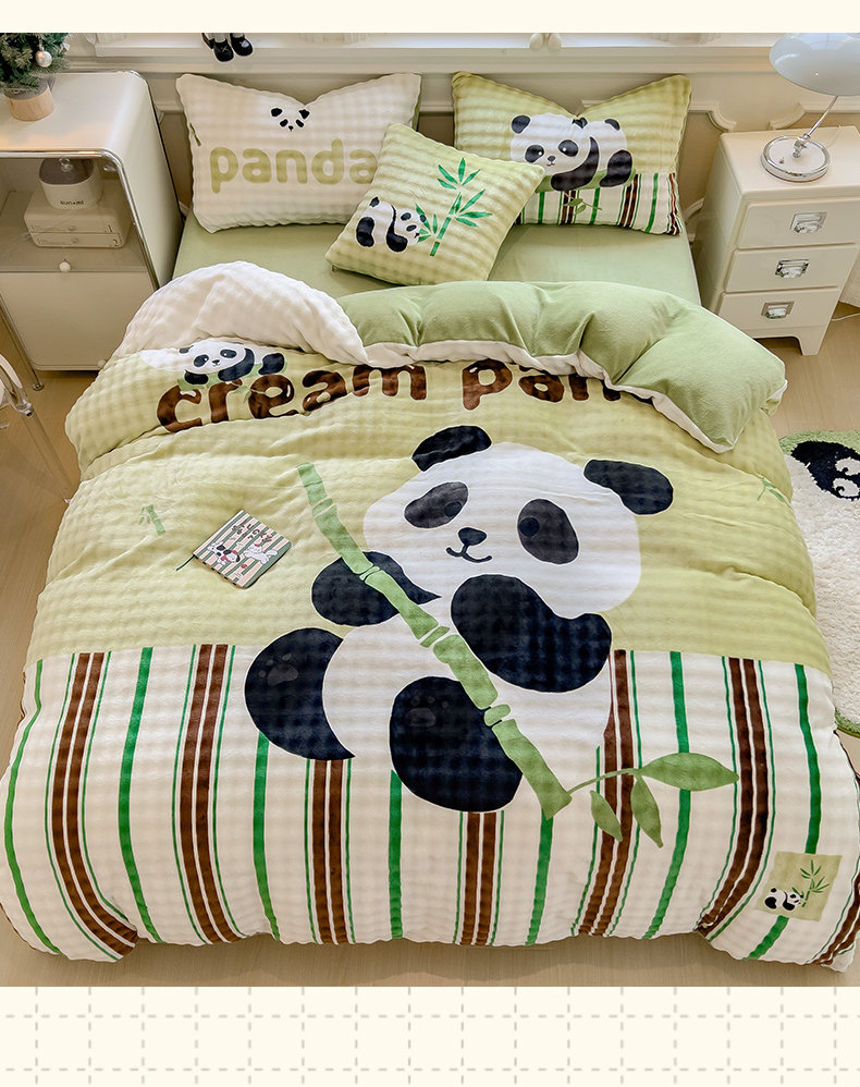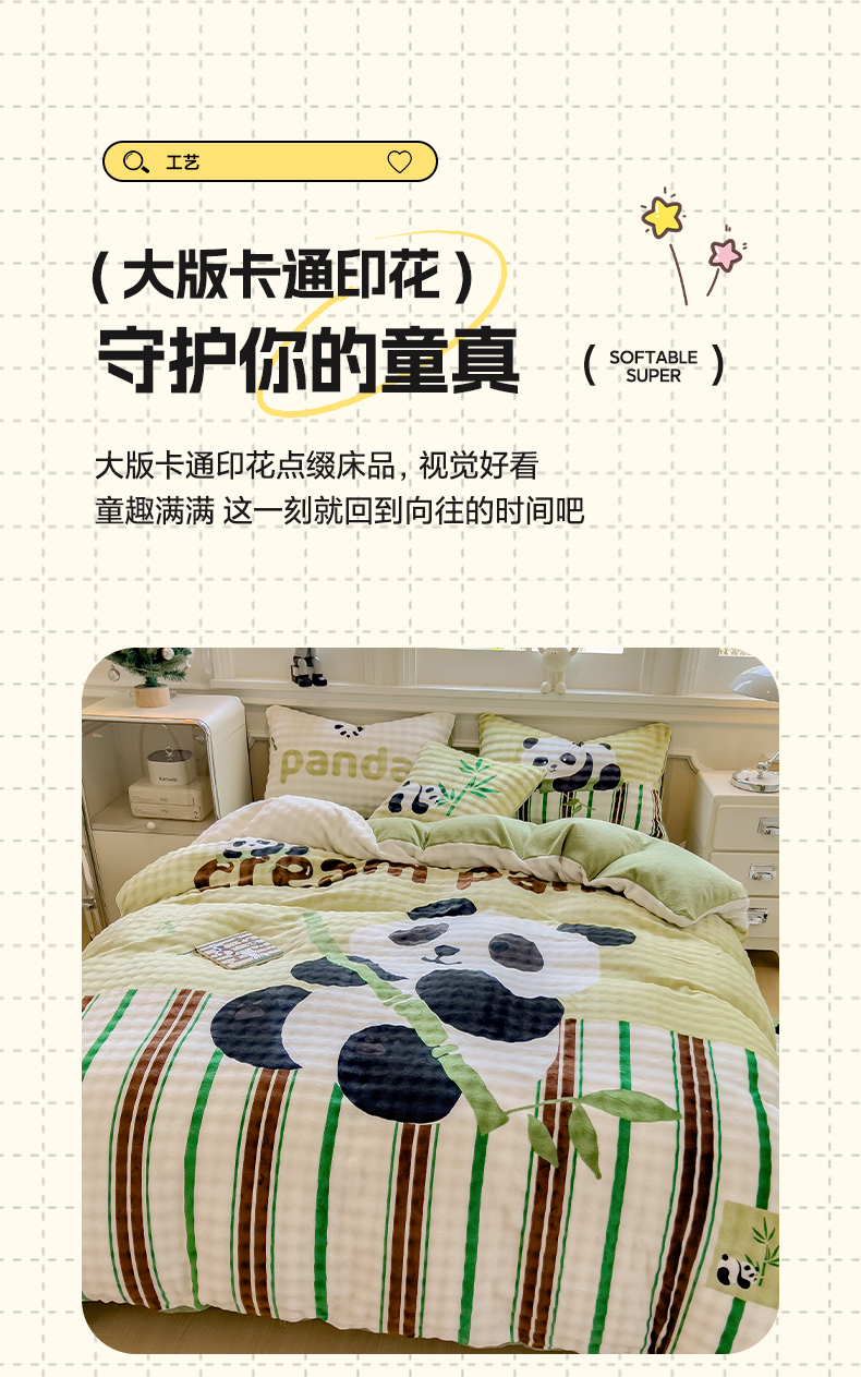 商品名称:摩妮卡 2025新款亲肤舒适泡泡绒大版卡通印花五件套 大版熊猫抱竹