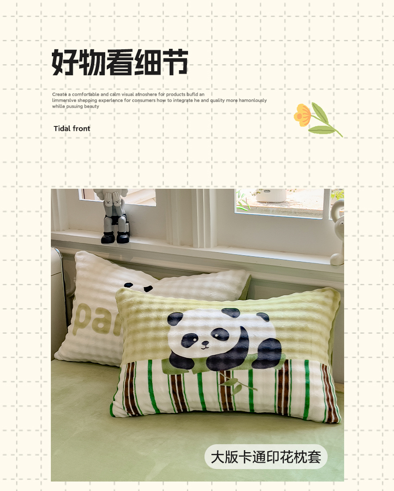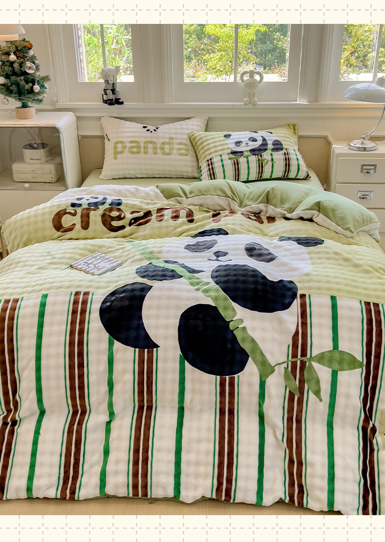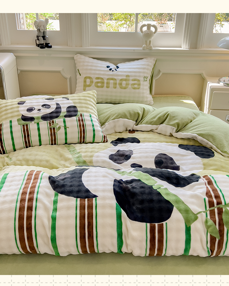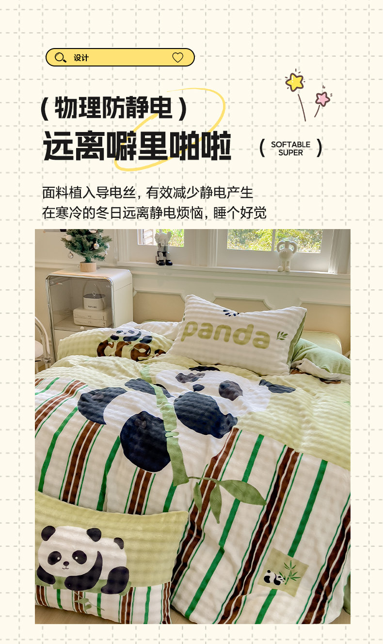 商品名称:摩妮卡 2025新款亲肤舒适泡泡绒大版卡通印花五件套 大版熊猫抱竹