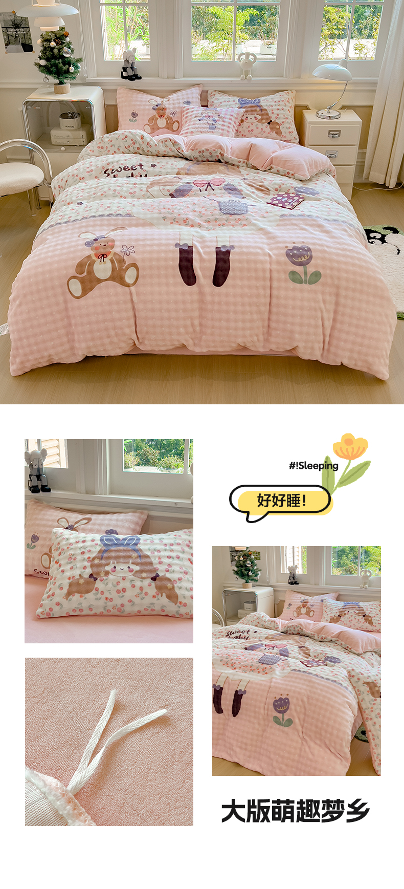 (总)摩妮卡 2025新款小清新加厚260克牛奶绒泡泡绒四件套,甜系兔兔,幽香恋曲,软萌萌小兔,洛丽兔,紫韵美乐蒂,萌兔时光,凯蒂小熊,软萌小猫,暮雅,快乐每一天,花园狗,奶蓝玉桂狗,小兔甜甜酱