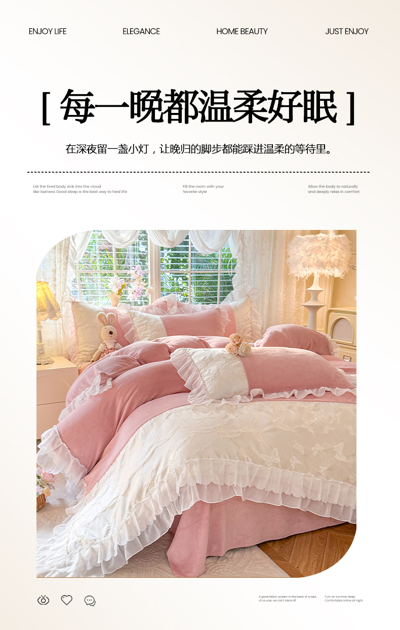 艾米家居 2025秋冬新款浮雕牛奶绒花边四件套 豆沙