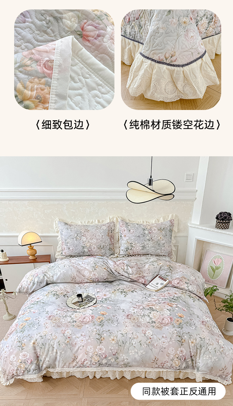 (总)冬然家纺 2025新款纯棉数码印花工艺款床盖四件套,淡雅清香,国色天香,花海之恋,花影,梦幻花镜,墨雅清风,田园花梦,玉兰花,珍爱花语