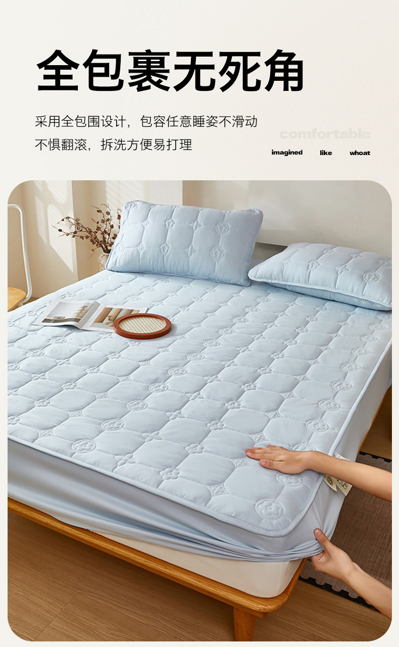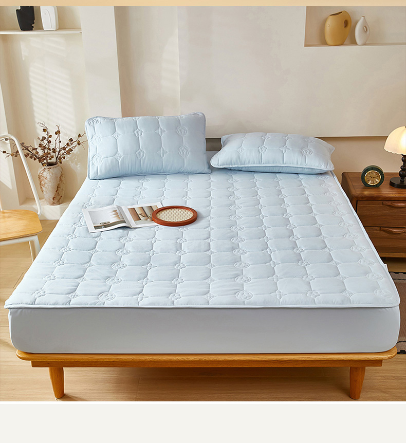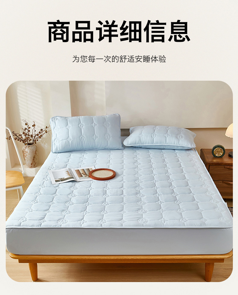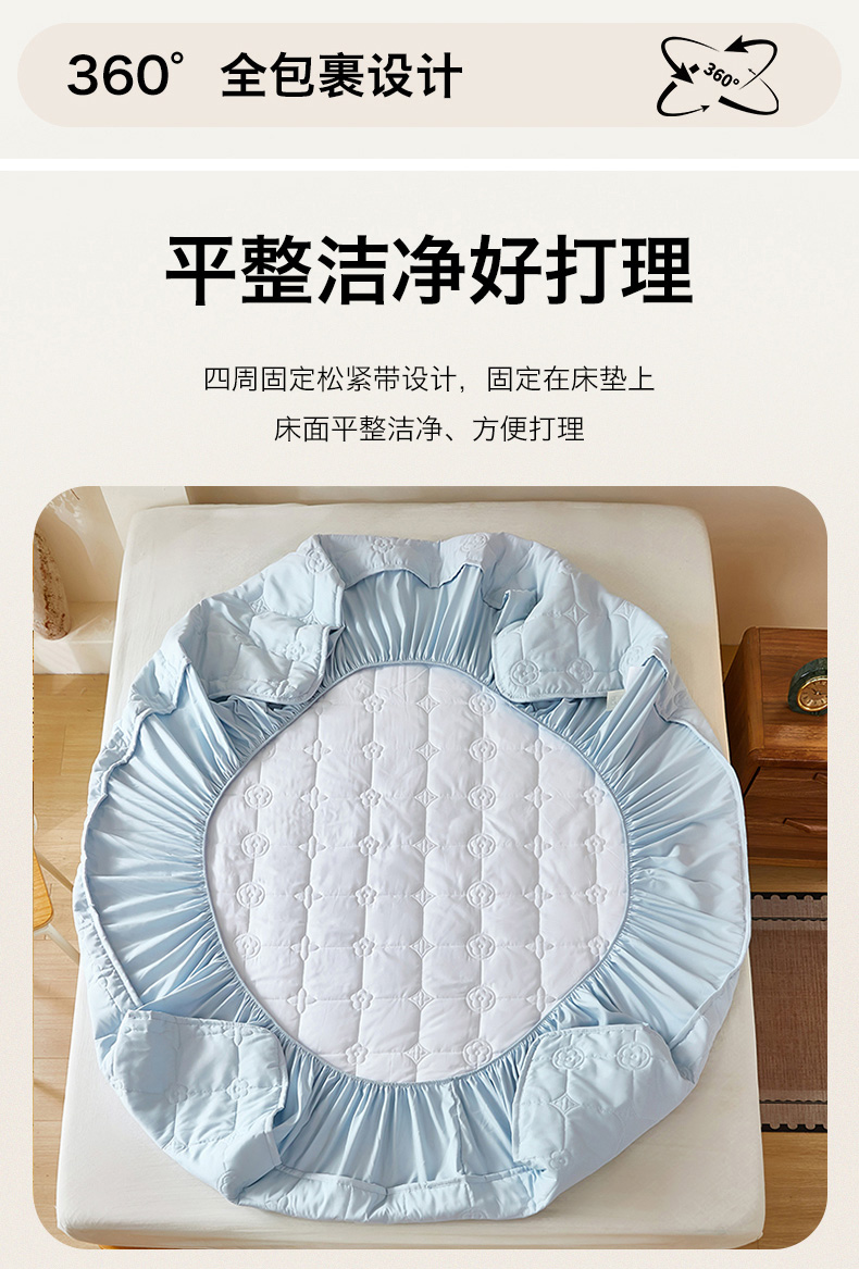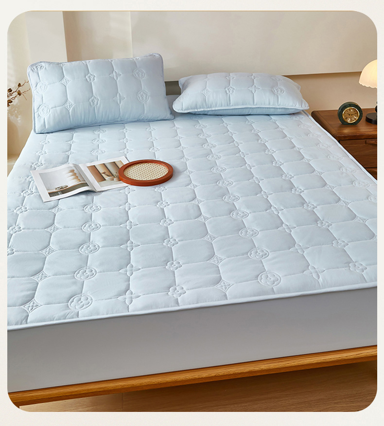 瑞兴纺 2025年新款亲肤夹棉床笠 幸运格-海洋蓝