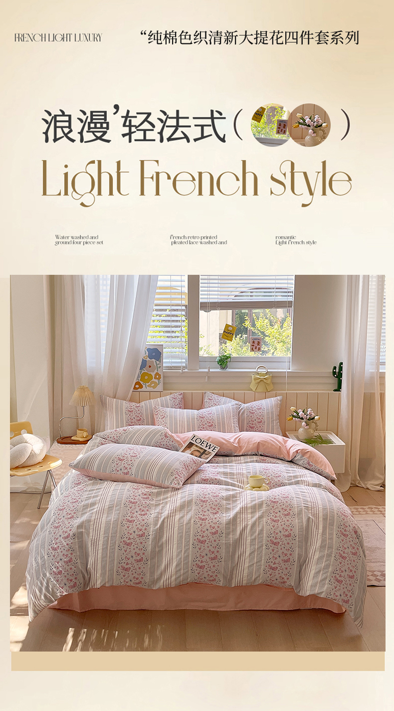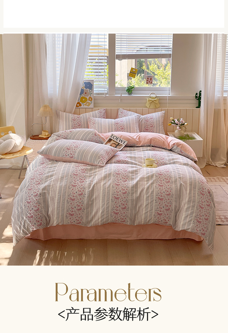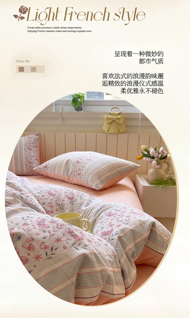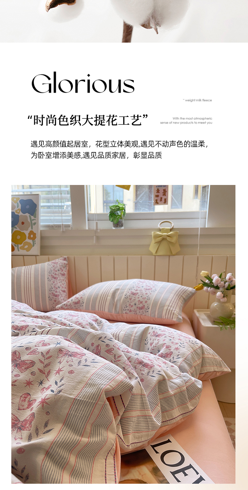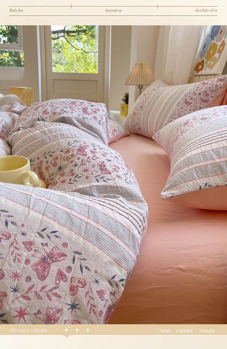 当前位置: 91家纺网 > 商品网购 > 床品套件 > 四件套 > 全棉普通四件套 > 琪格格纺织 2025新款全棉纯棉色织提花小清新四件套 梦蝶-粉
