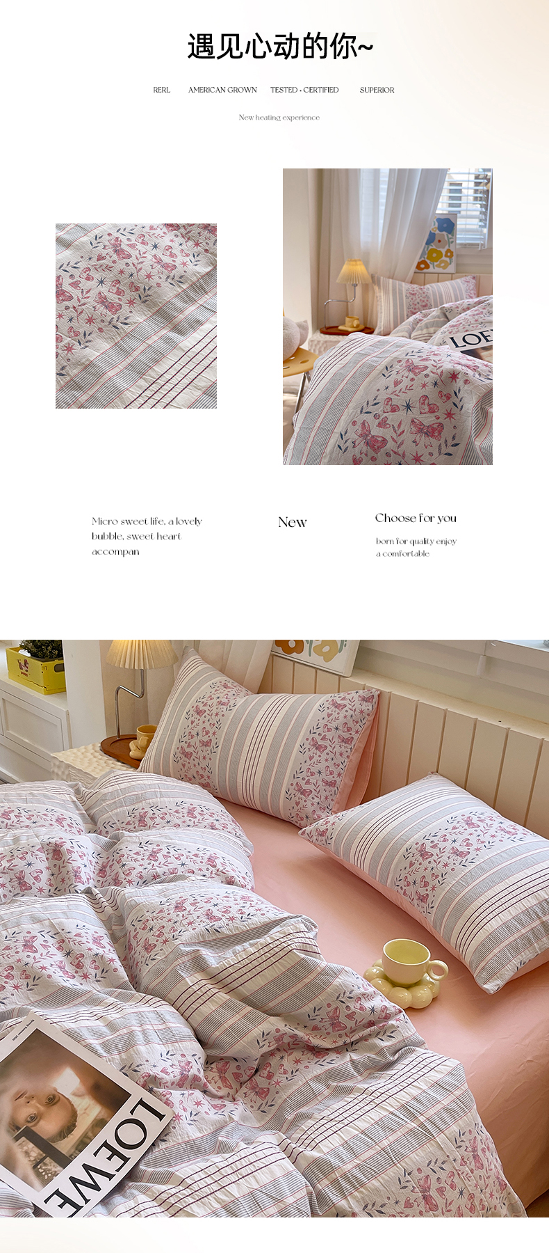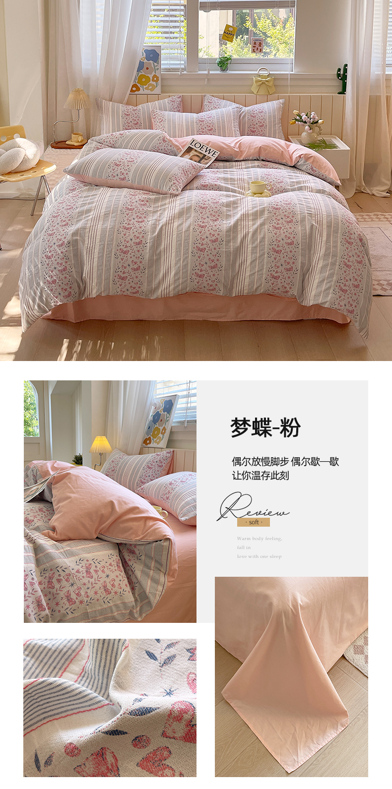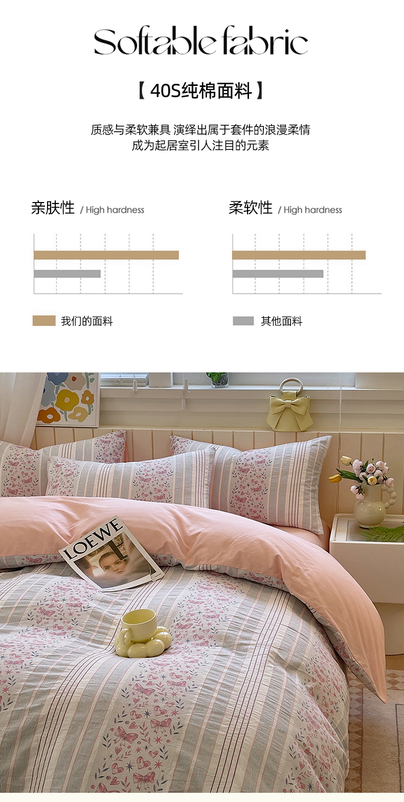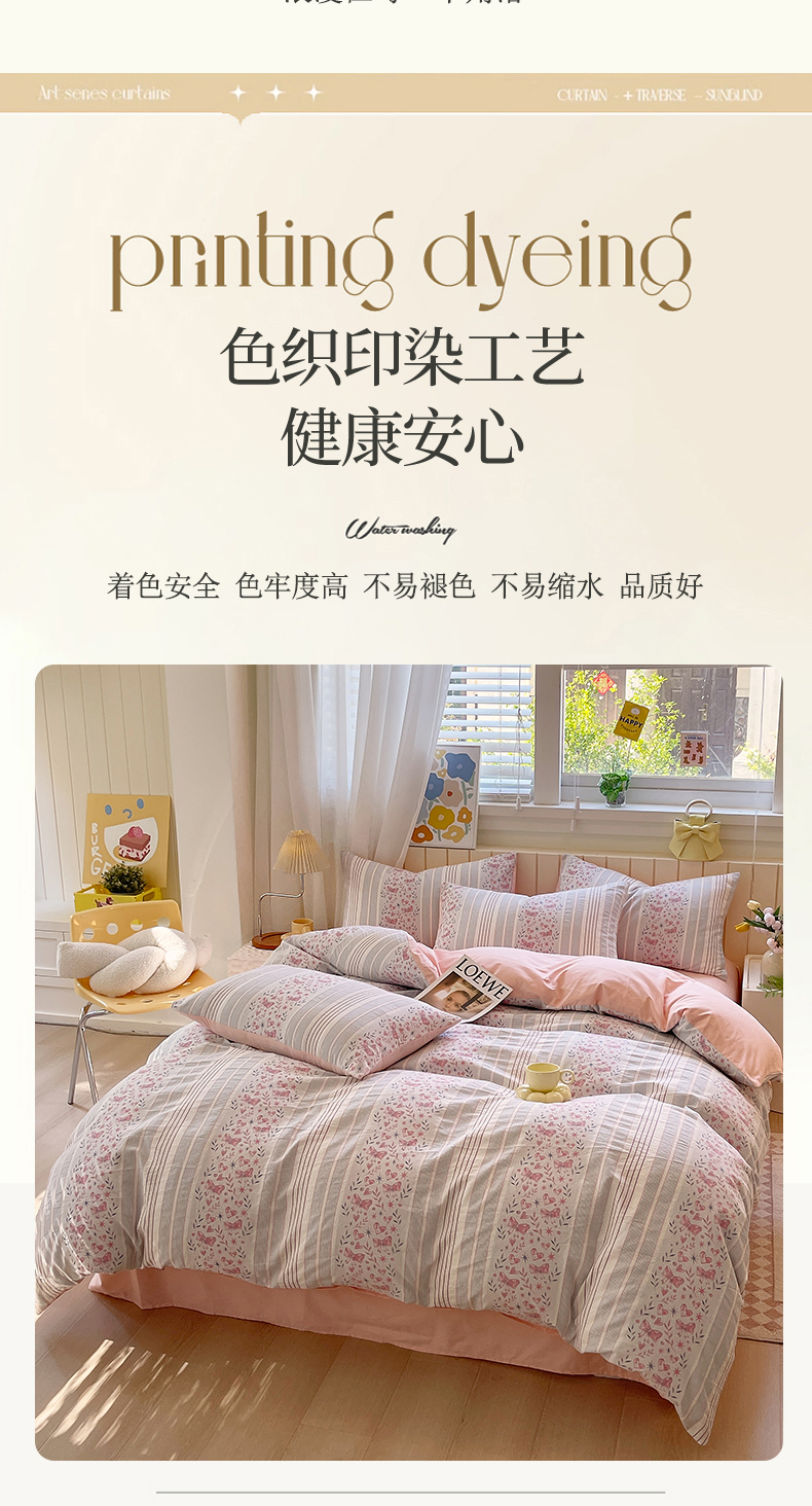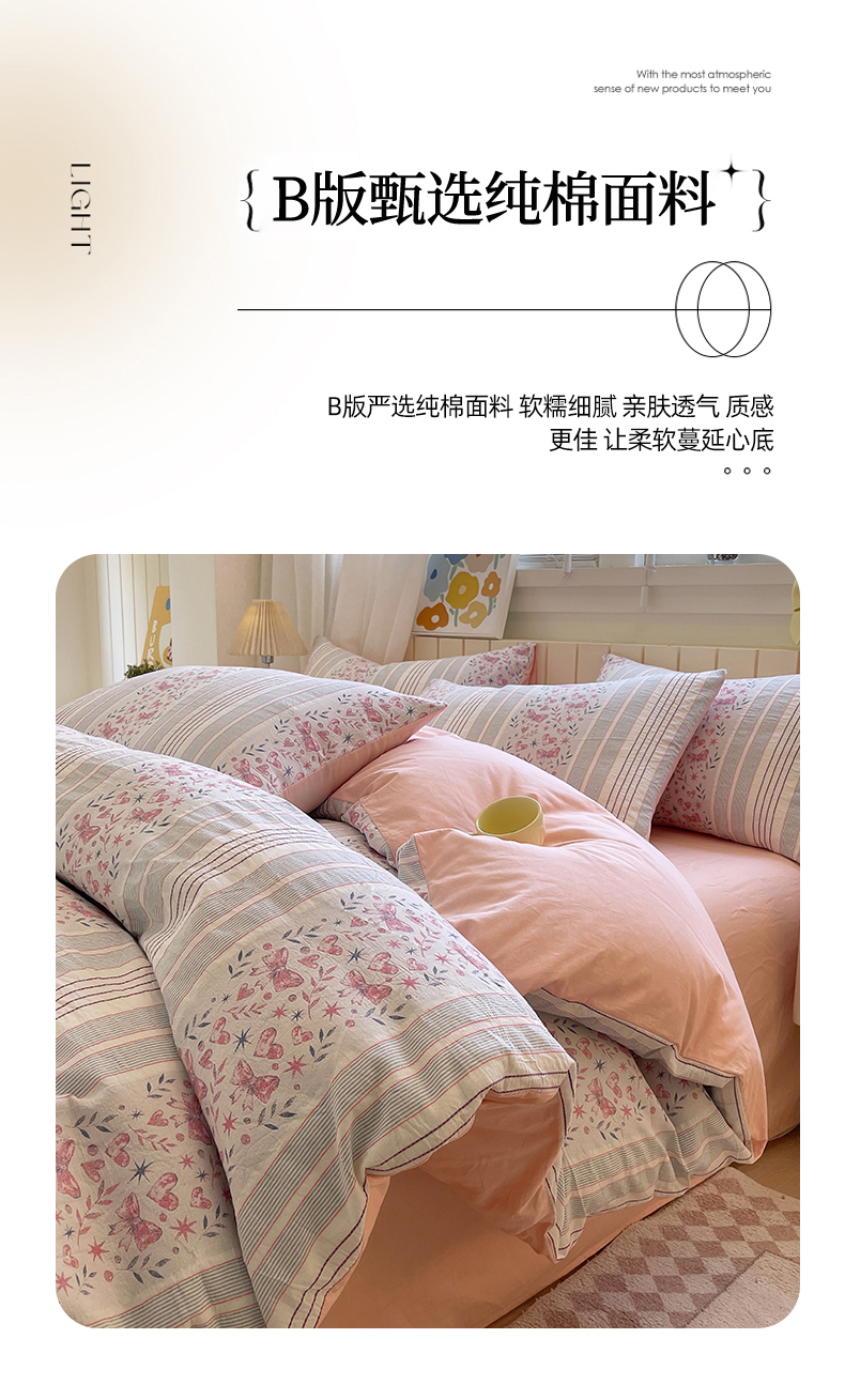 当前位置: 91家纺网 > 商品网购 > 床品套件 > 四件套 > 全棉普通四件套 > 琪格格纺织 2025新款全棉纯棉色织提花小清新四件套 梦蝶-粉