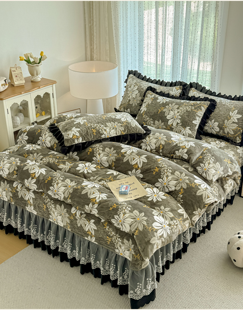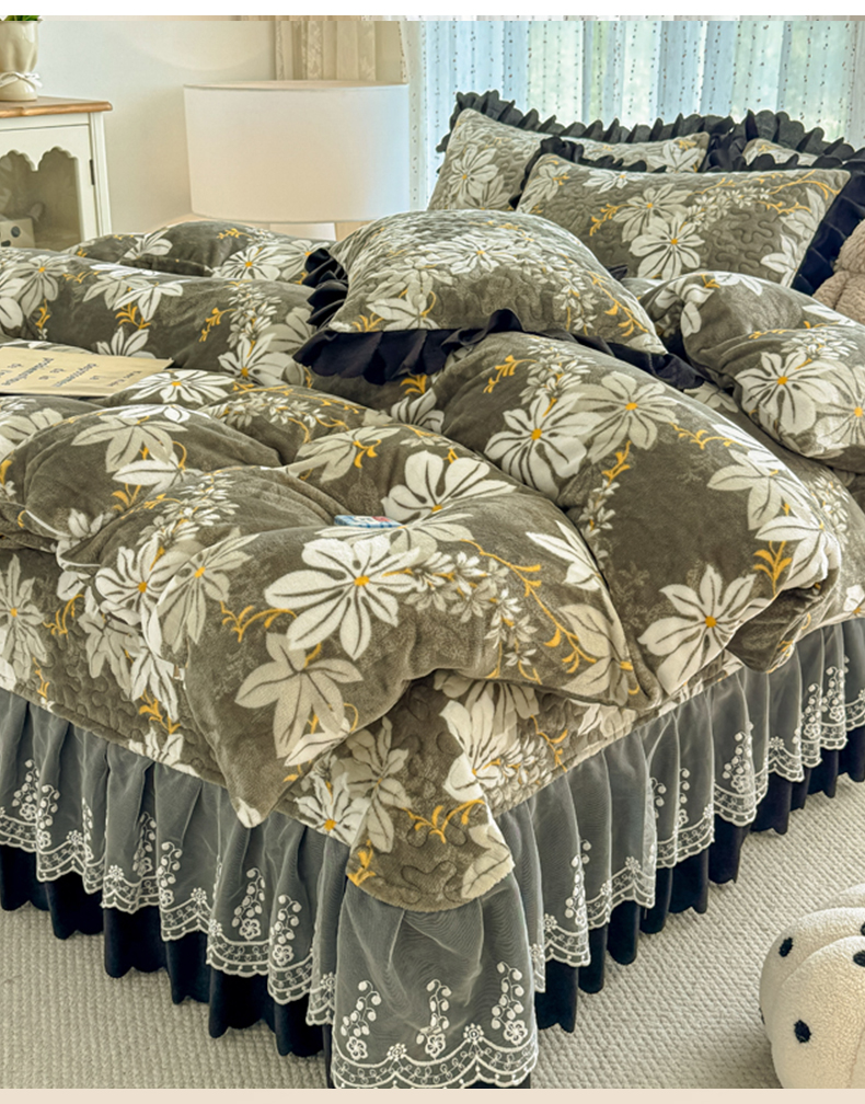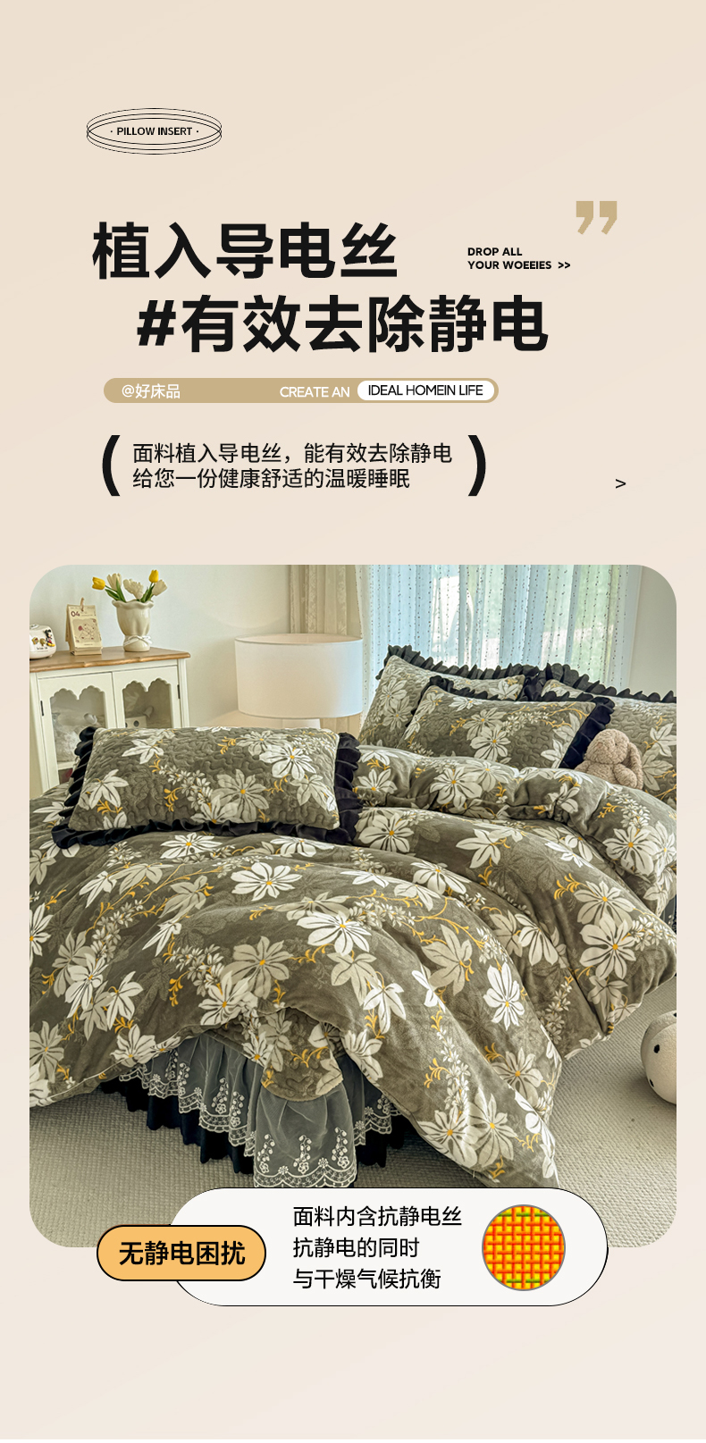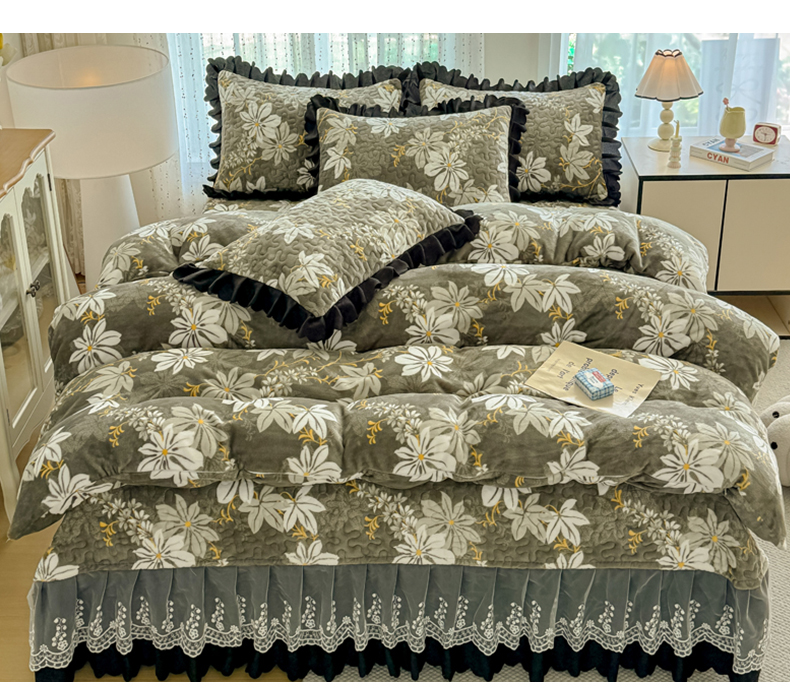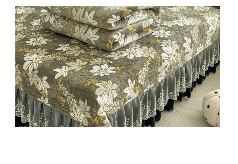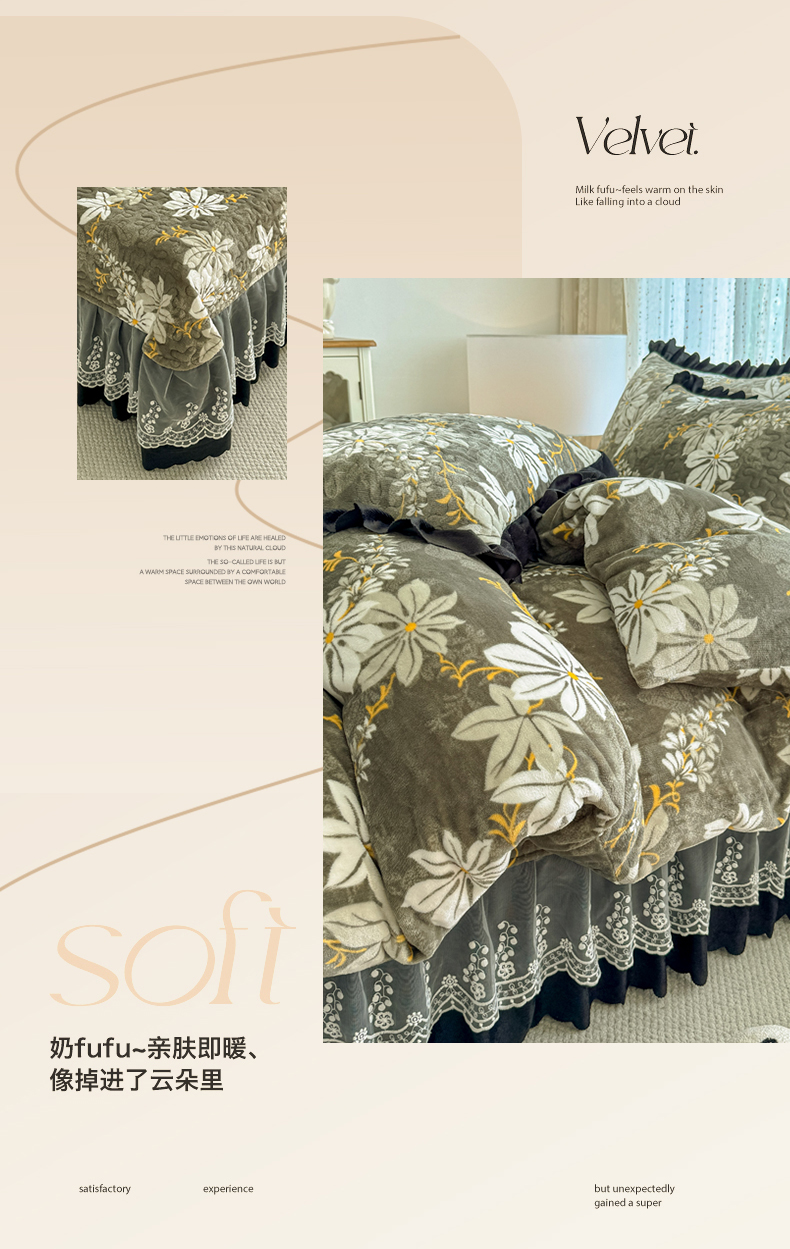 当前位置: 91家纺网 > 商品网购 > 床品套件 > 四件套 > 牛奶绒四件套 > 绒耀 2025新款直播爆款双层蕾丝花边牛奶绒印花床盖四件套床盖单件三件套 温婉佳人