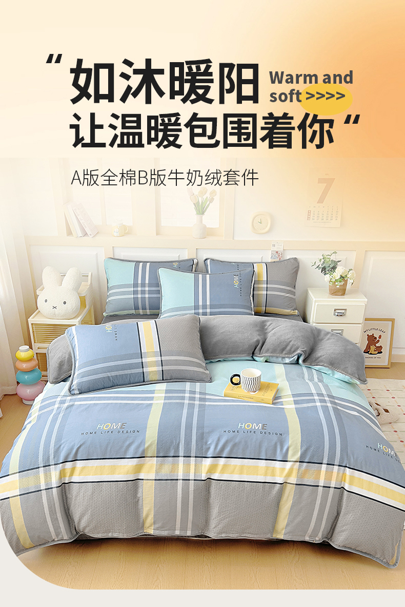 当前位置: 91家纺网 > 商品网购 > 床品套件 > 四件套 > 牛奶绒四件套 > 琪琪阁家纺 2025新款A类全棉纯棉加牛奶绒包边款单被套四件套菲尔顿