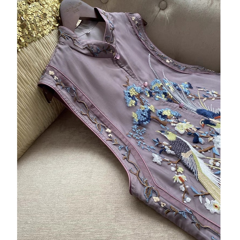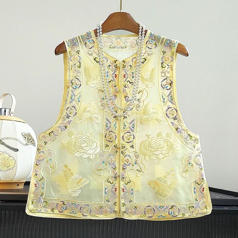 洛兰沙家居馆【只代发】【只代发】 2025新款复古织锦缎细纱棉麻拼接马甲背心刺绣中式盘扣上衣 44