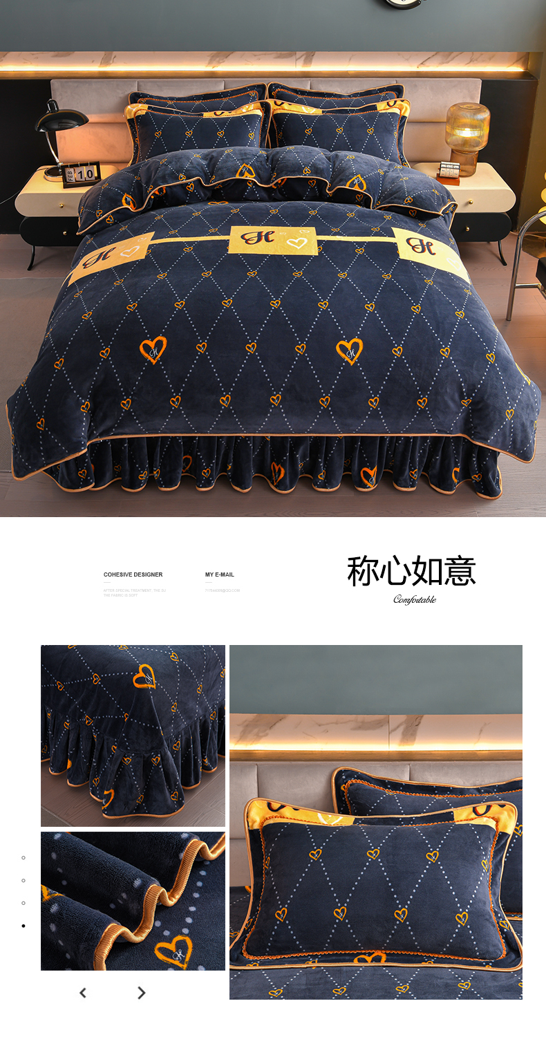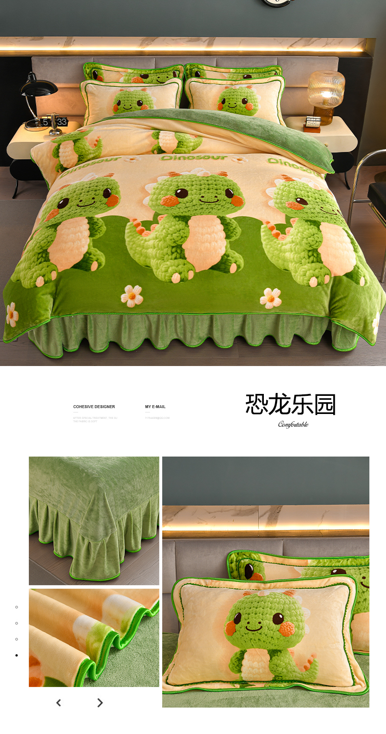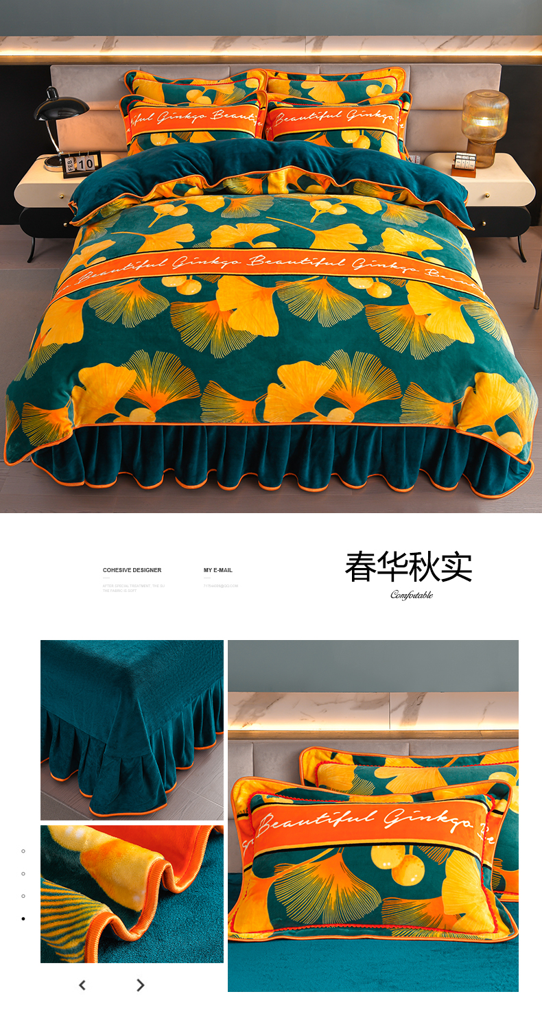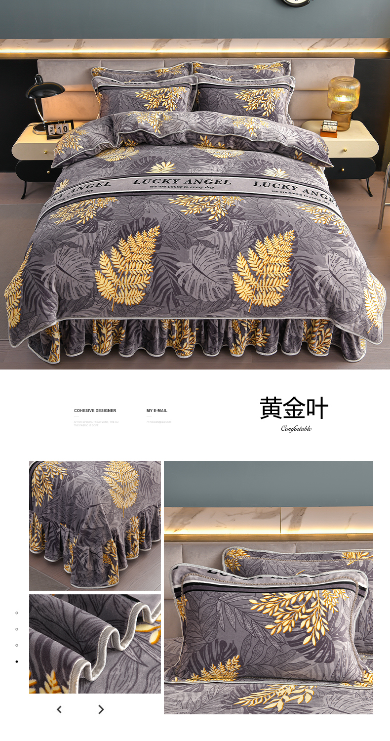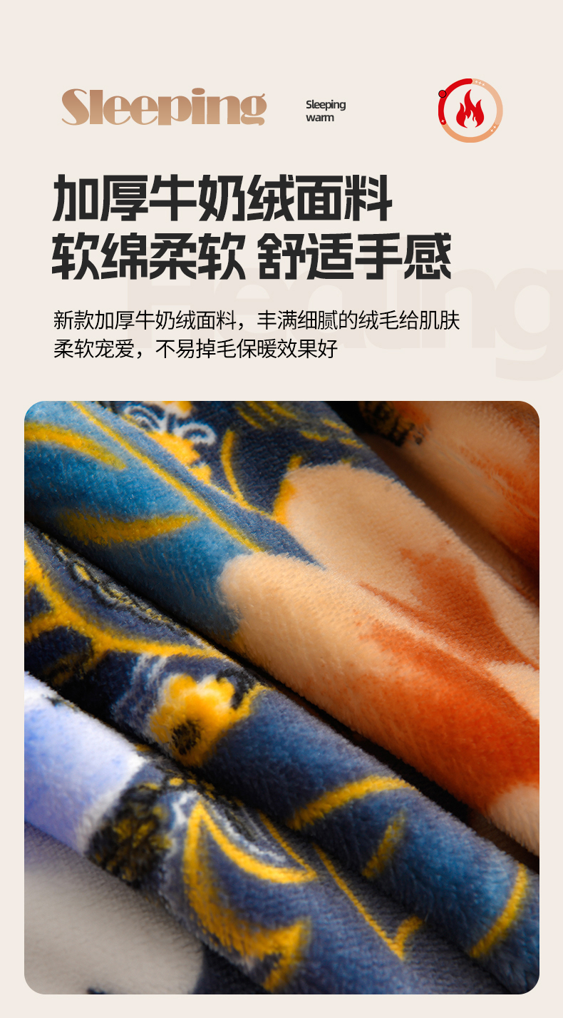 商品名称:(总)董成龙家纺 20256新款高克重9-10斤加厚印花超柔牛奶绒爆款法莱绒金貂绒床裙四件套控价