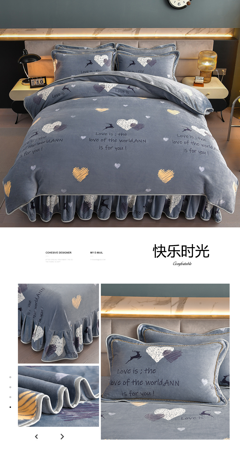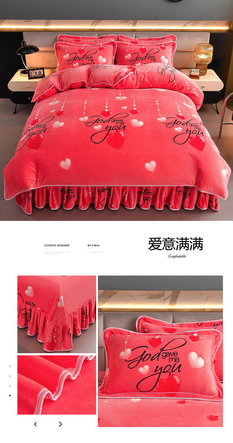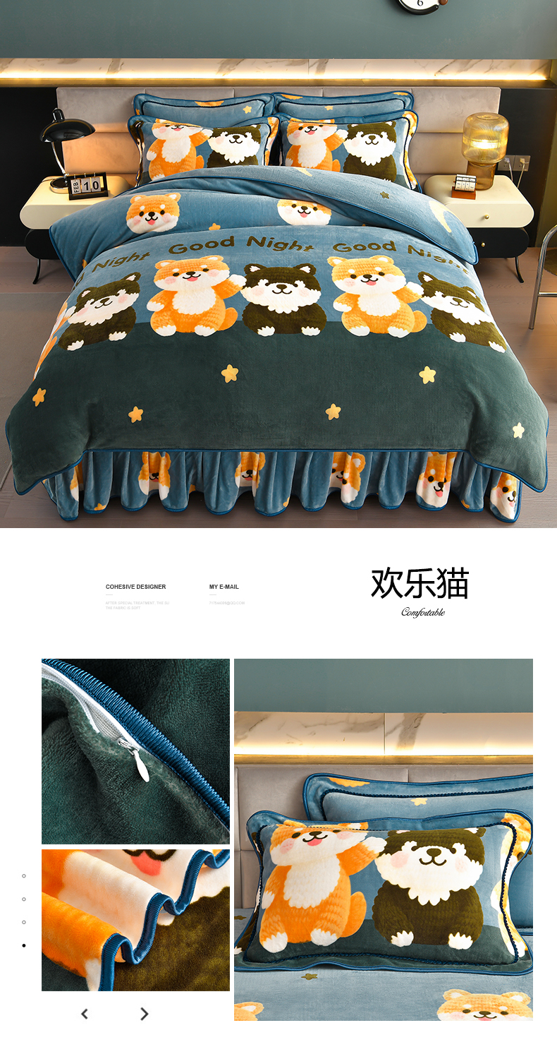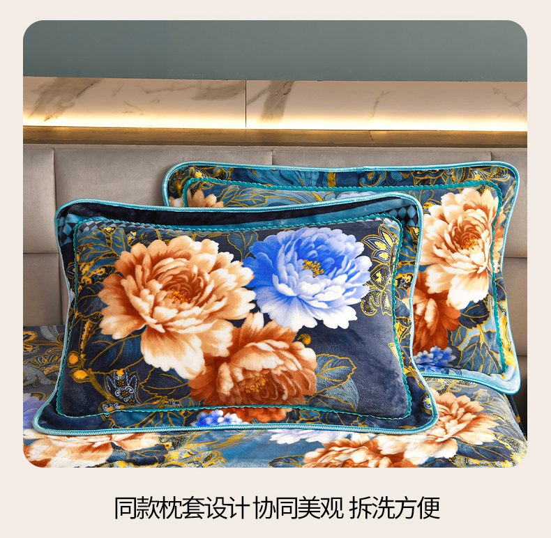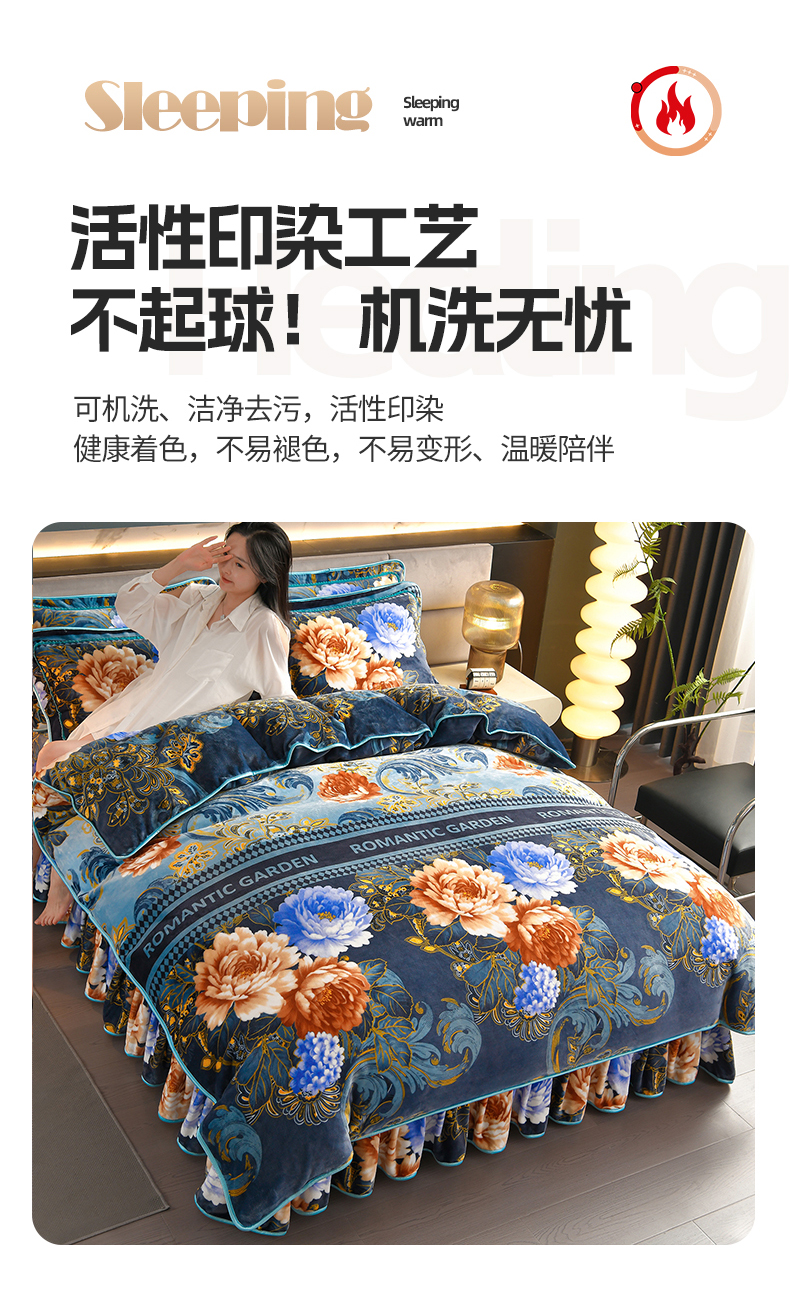 商品名称:(总)董成龙家纺 20256新款高克重9-10斤加厚印花超柔牛奶绒爆款法莱绒金貂绒床裙四件套控价