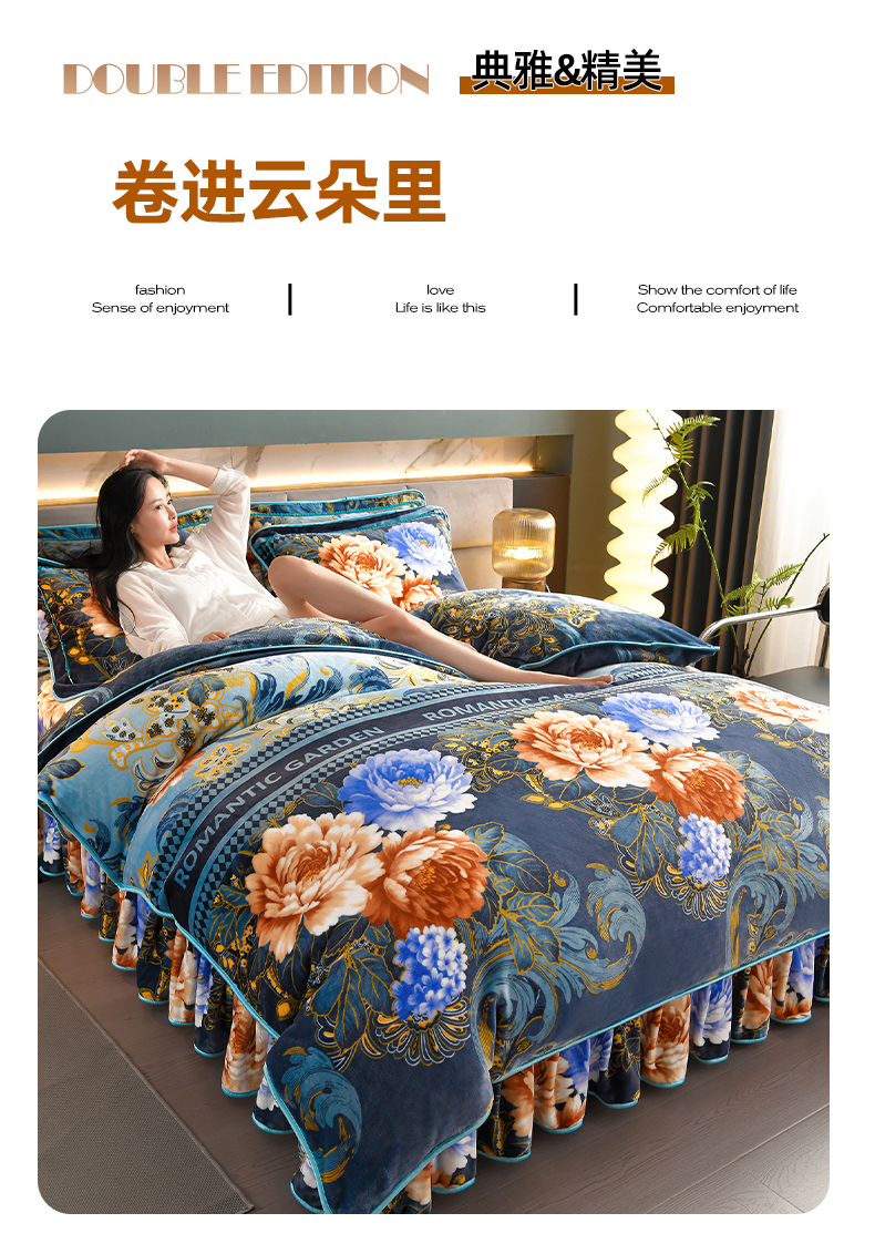 (总)董成龙家纺 20256新款高克重9-10斤加厚印花超柔牛奶绒爆款法莱绒金貂绒床裙四件套控价