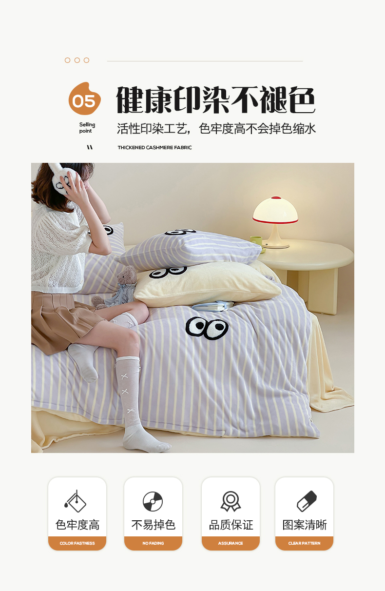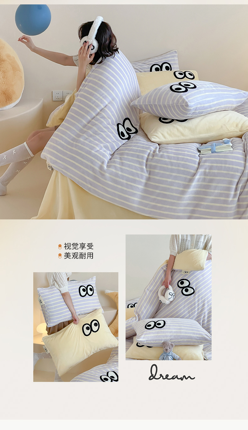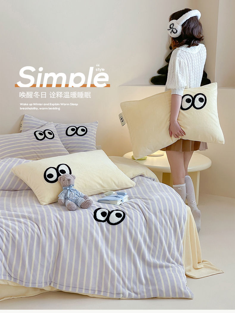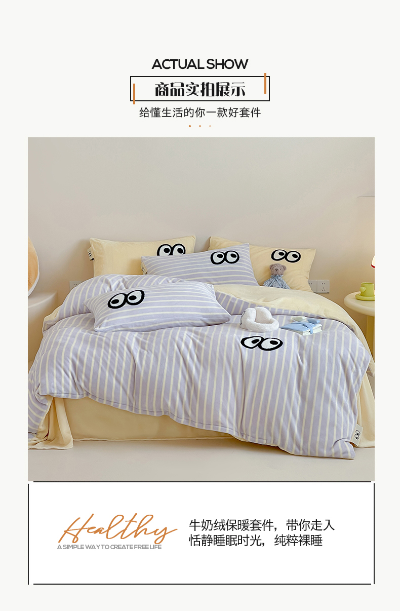 当前位置: 91家纺网 > 商品网购 > 床品套件 > 四件套 > 牛奶绒四件套 > 桃子家居 2025新款A类ins毛巾绣显眼包撞色格子玛卡龙加厚牛奶绒织标四件套时尚模特 绒-显眼包紫条黄