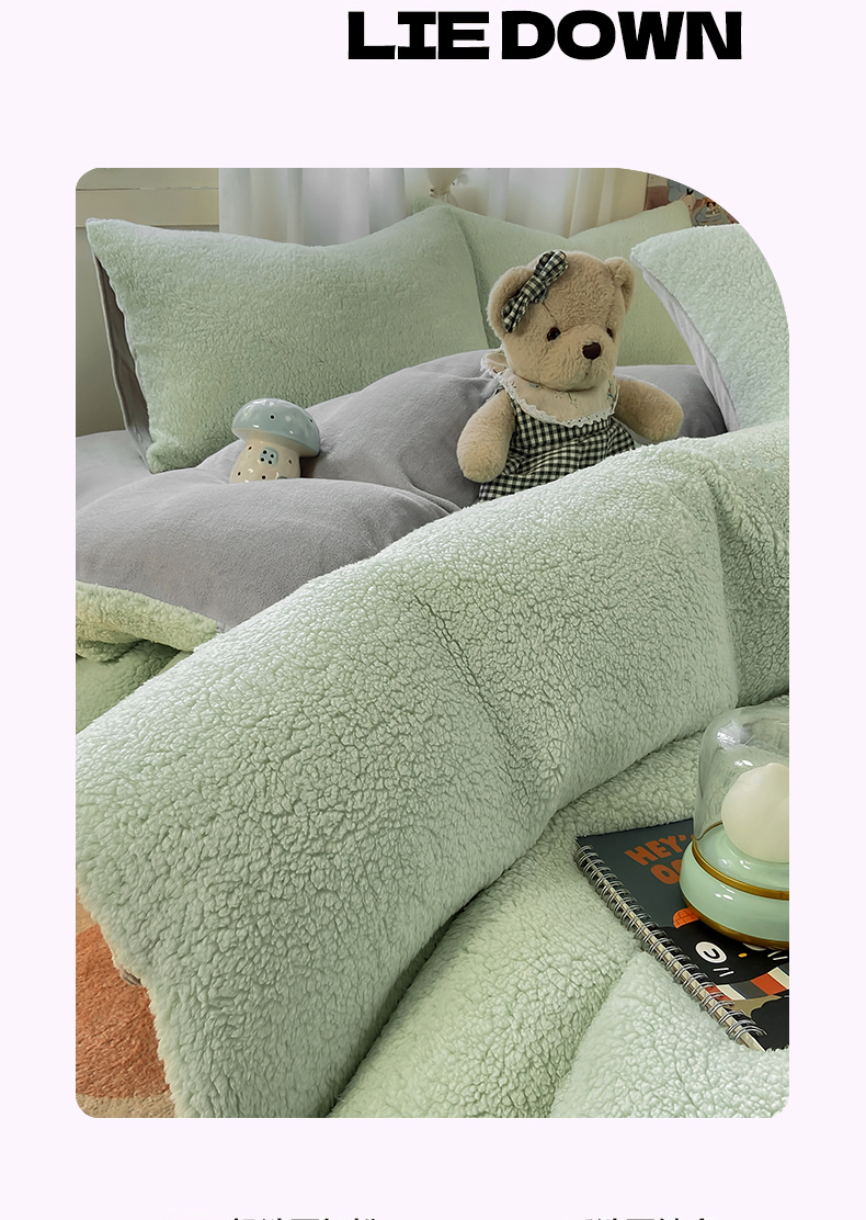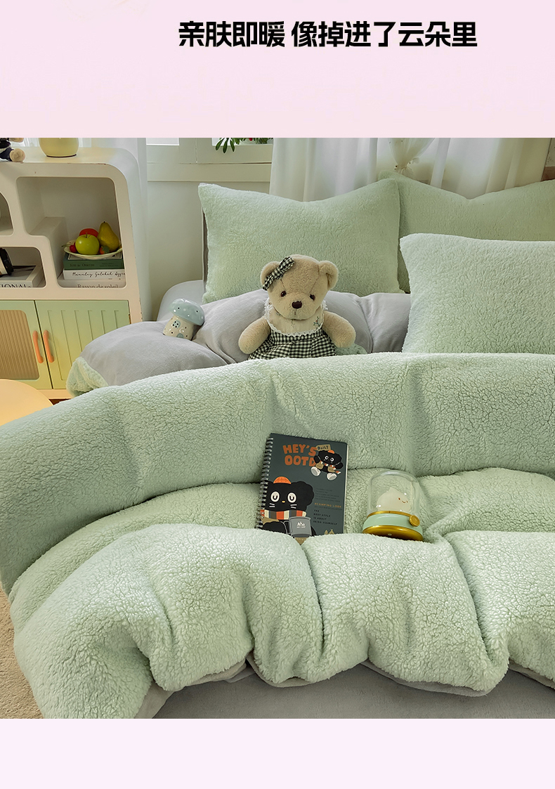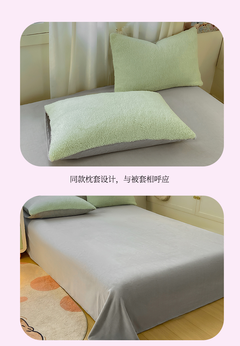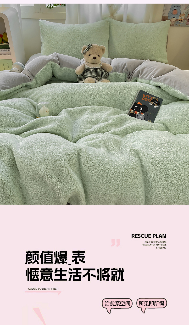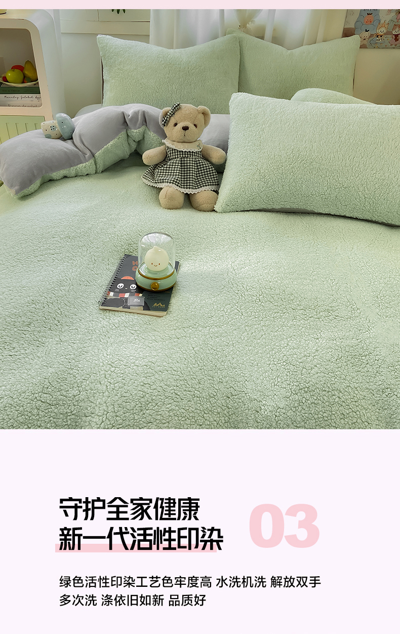 当前位置: 91家纺网 > 商品网购 > 床品套件 > 四件套 > 羊羔绒四件套 > 灰鲸 2025新款秋冬韩系牛奶羊羔绒四件套 羊羔-绿灰