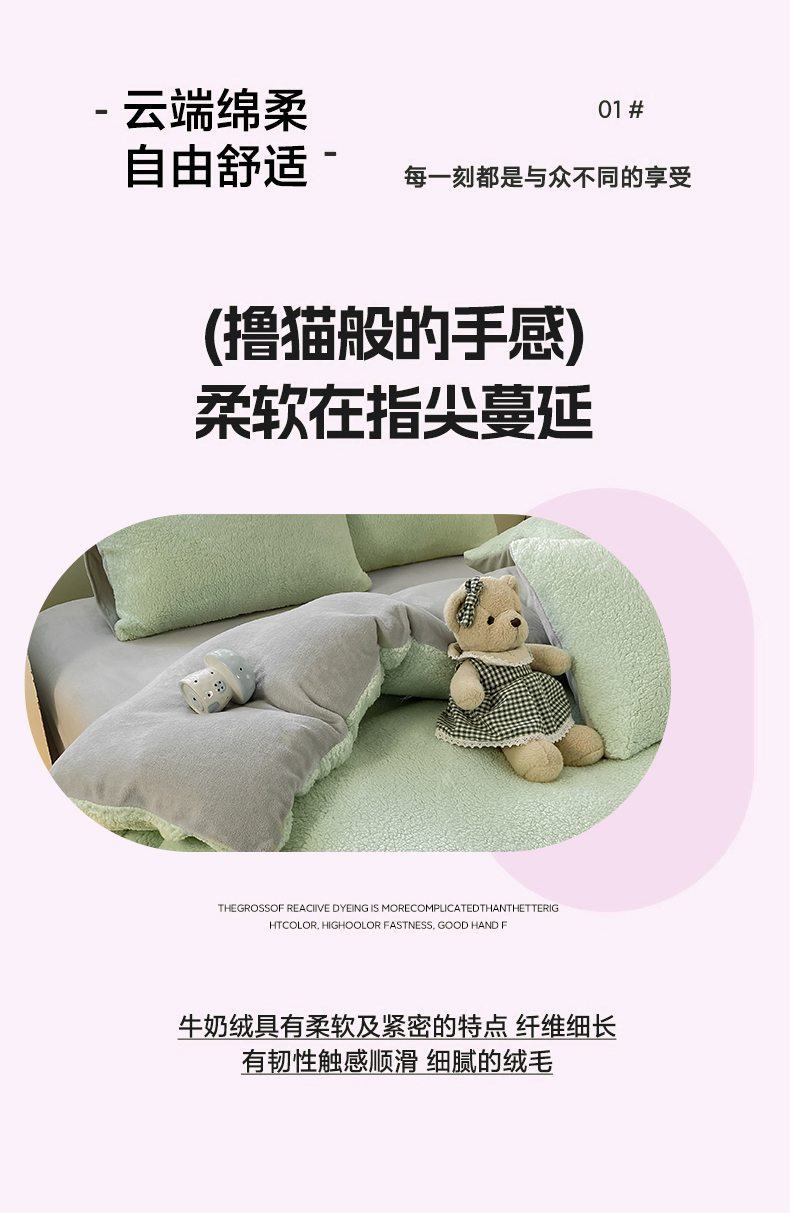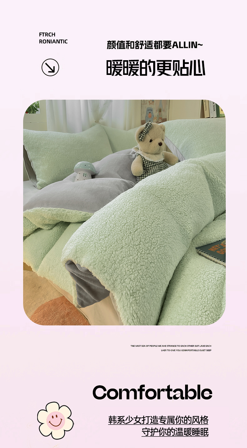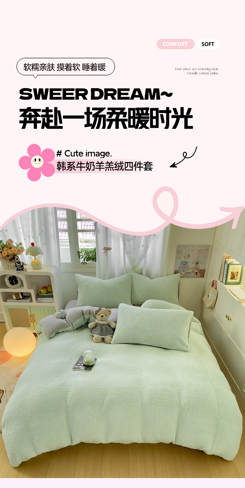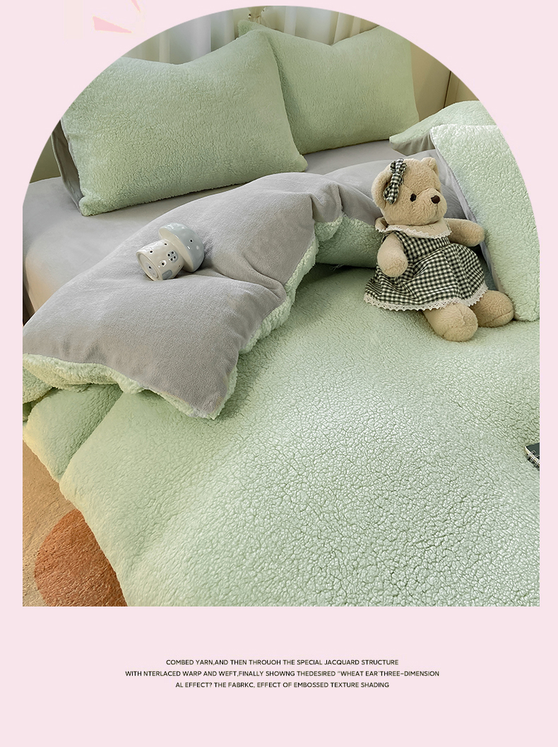 当前位置: 91家纺网 > 商品网购 > 床品套件 > 四件套 > 羊羔绒四件套 > 灰鲸 2025新款秋冬韩系牛奶羊羔绒四件套 羊羔-绿灰