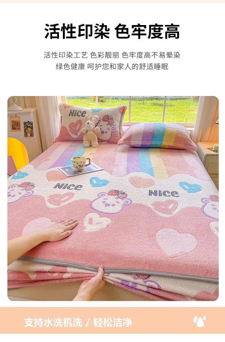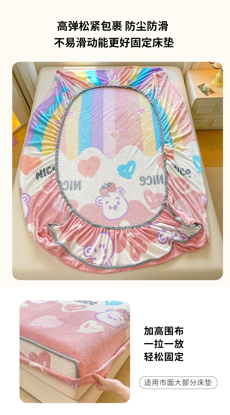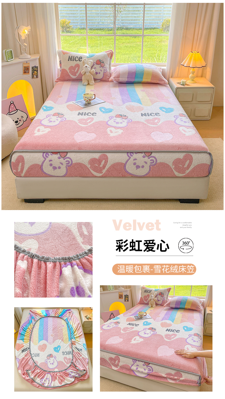 牵梦萦家纺 2025新款雪花绒立体包边床笠 彩虹爱心