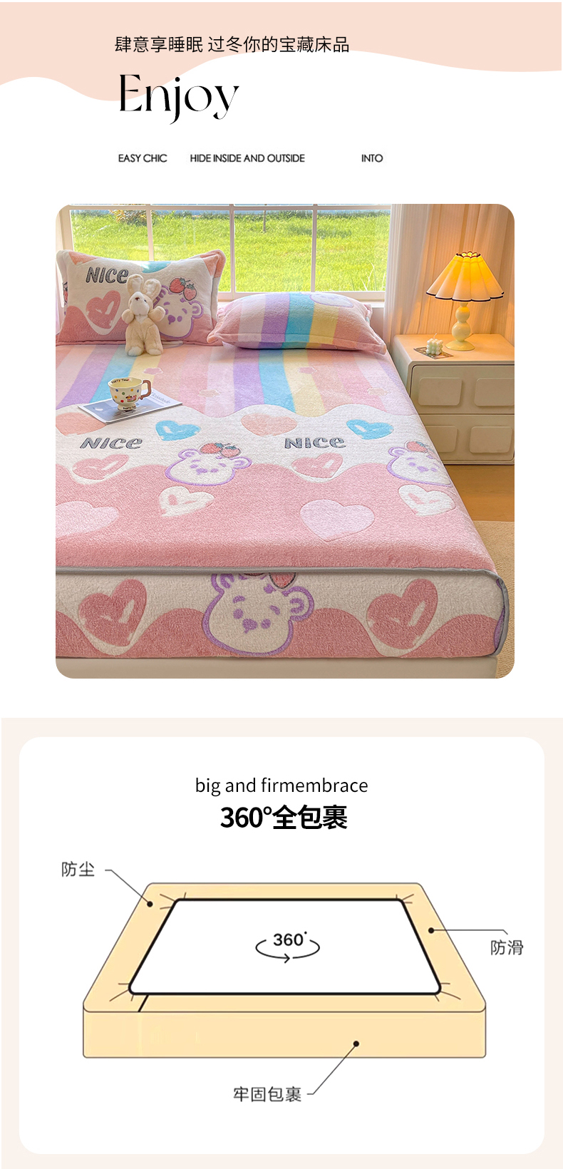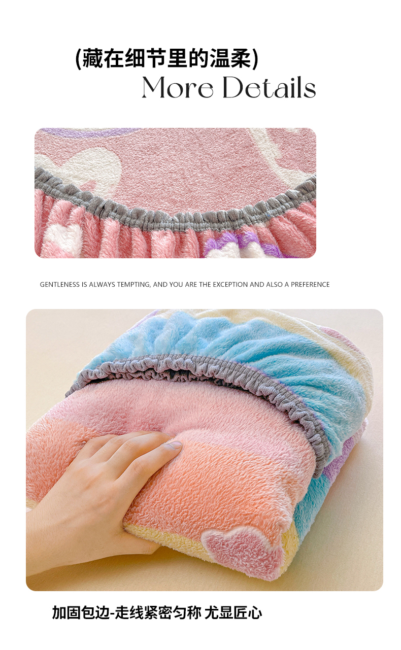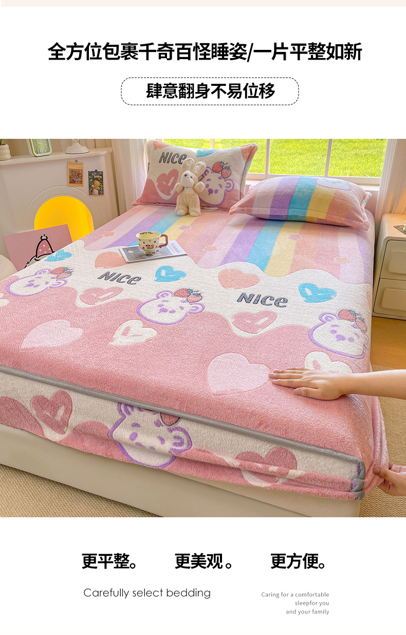 牵梦萦家纺 2025新款雪花绒立体包边床笠 彩虹爱心