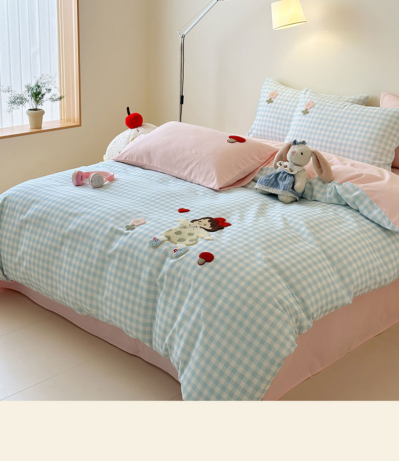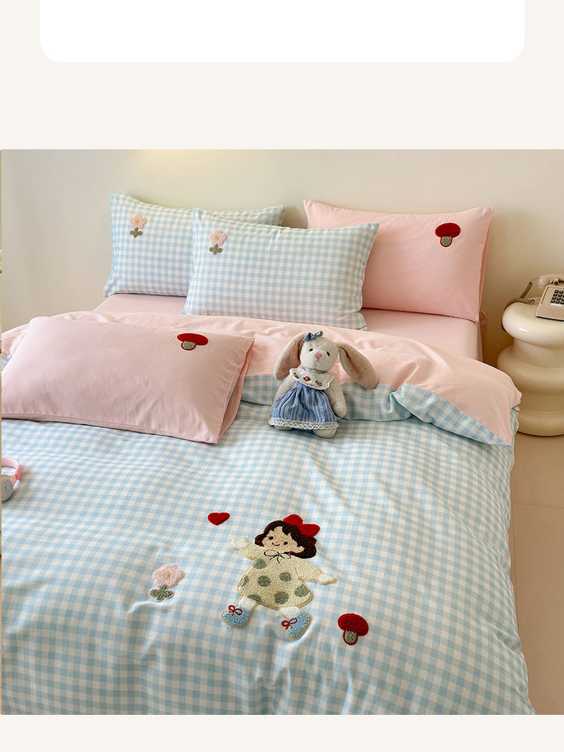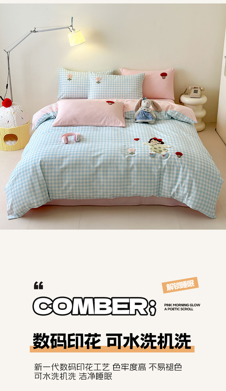 (总)锦觅 2025秋冬新款A类纯色小清新全棉磨毛绣花保暖四件套-第二批,可爱小兔,繁花似锦(米粉),可爱女孩(粉白)