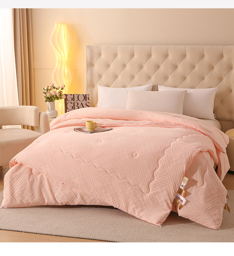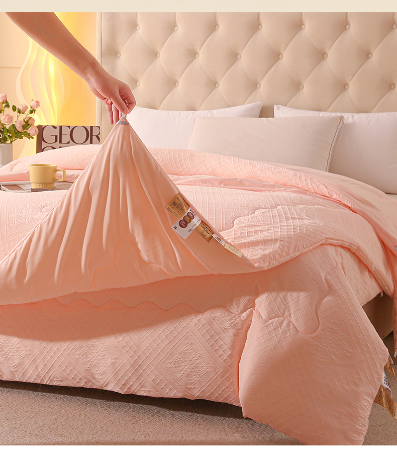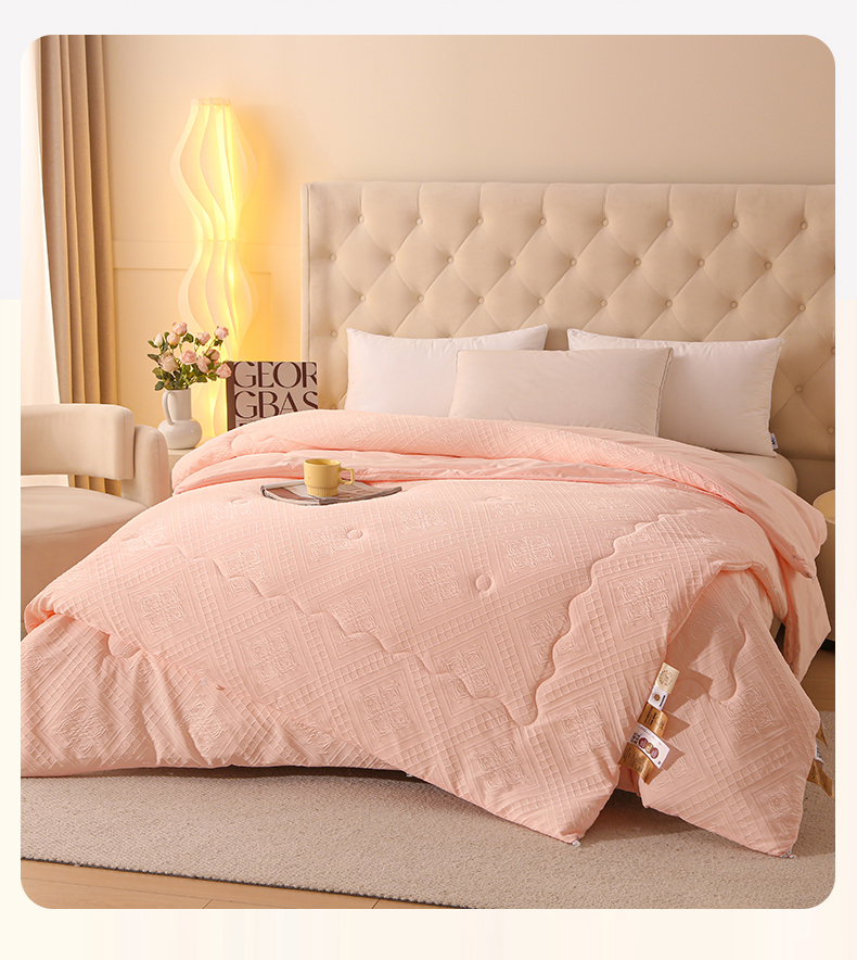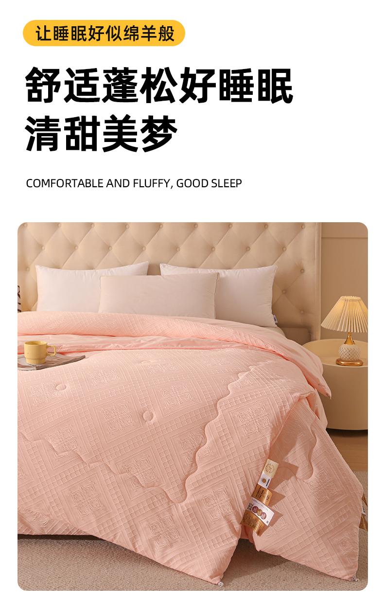 • 91家纺网 家纺一手货源 找家纺 棉乐町家居 2025新款A类针织提花进口羊毛子母被被子被芯 针织提花-粉色