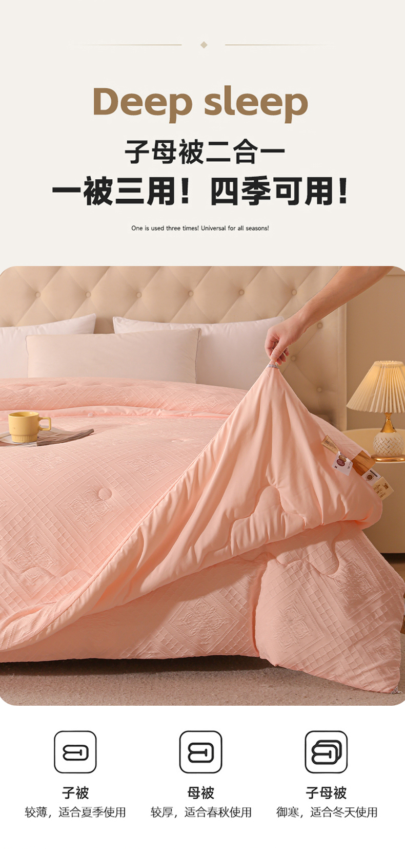 (总)棉乐町家居 2025新款A类针织提花进口羊毛子母被被子被芯,针织提花-米白,针织提花-浅灰,针织提花-粉色