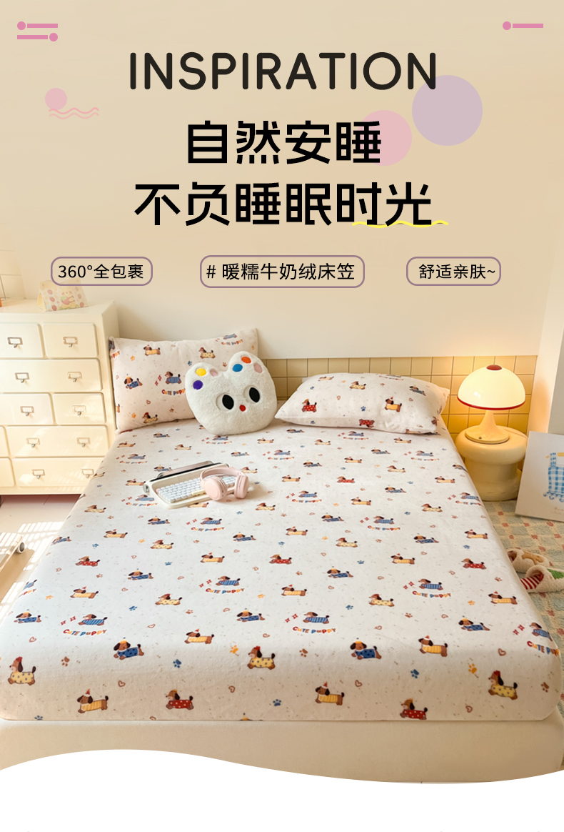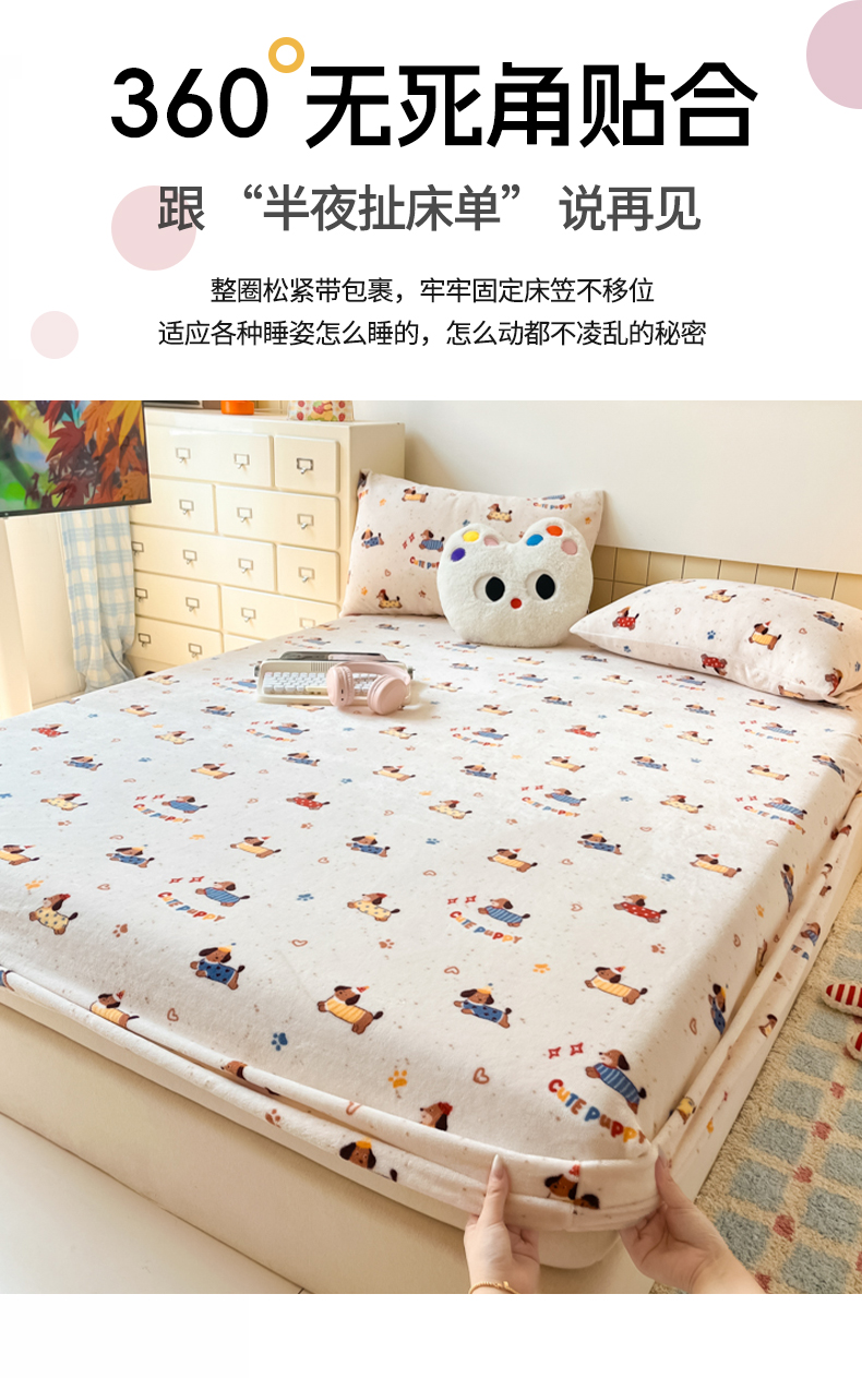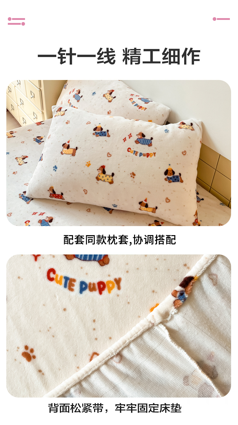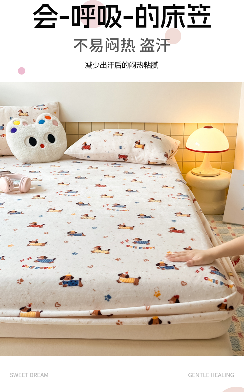 • 91家纺网 家纺一手货源 找家纺 爱彼家纺 2025新款高克重牛奶绒卡通床笠单床笠单件 小狗派对