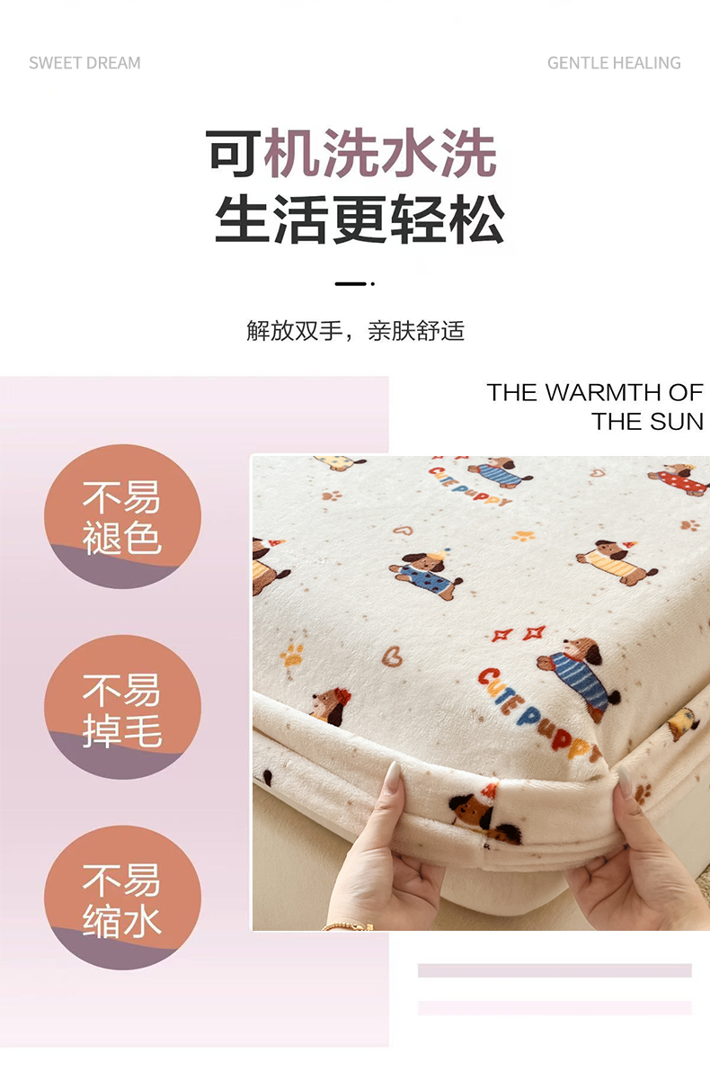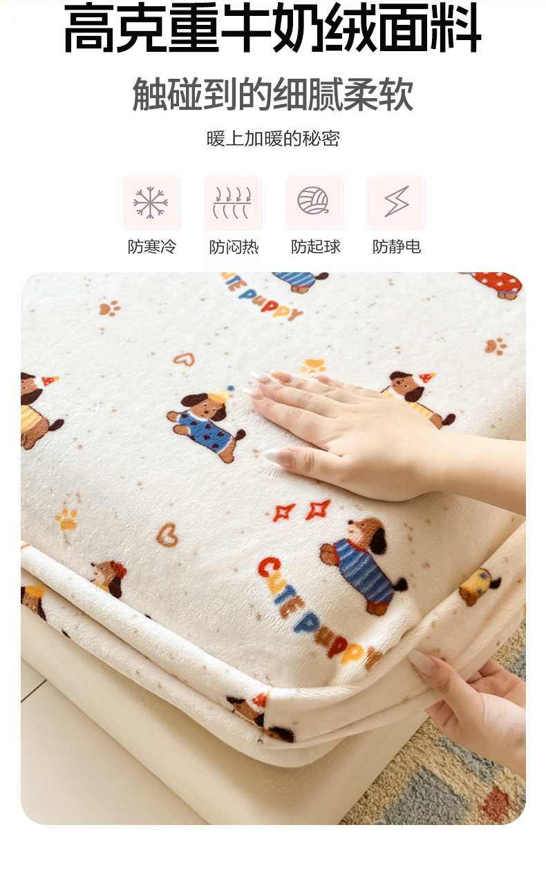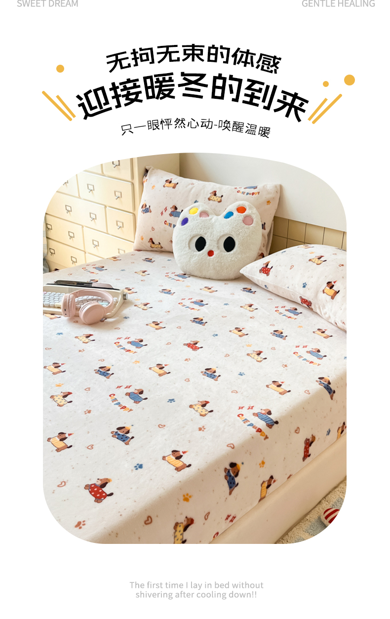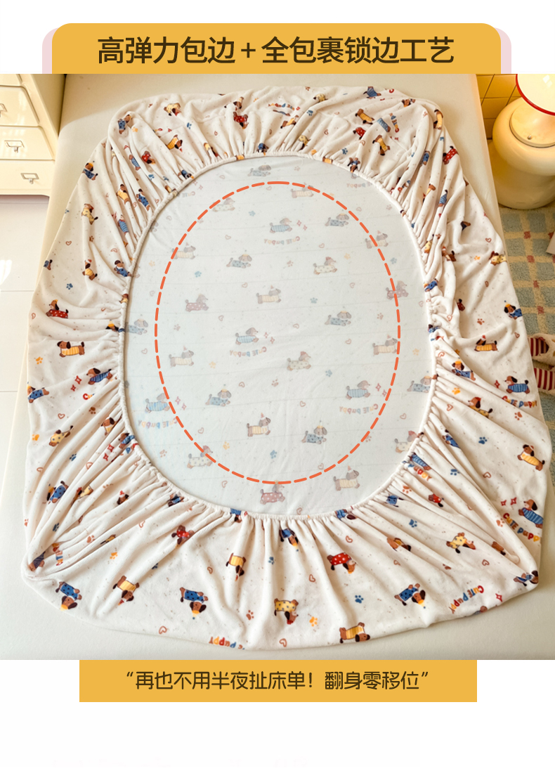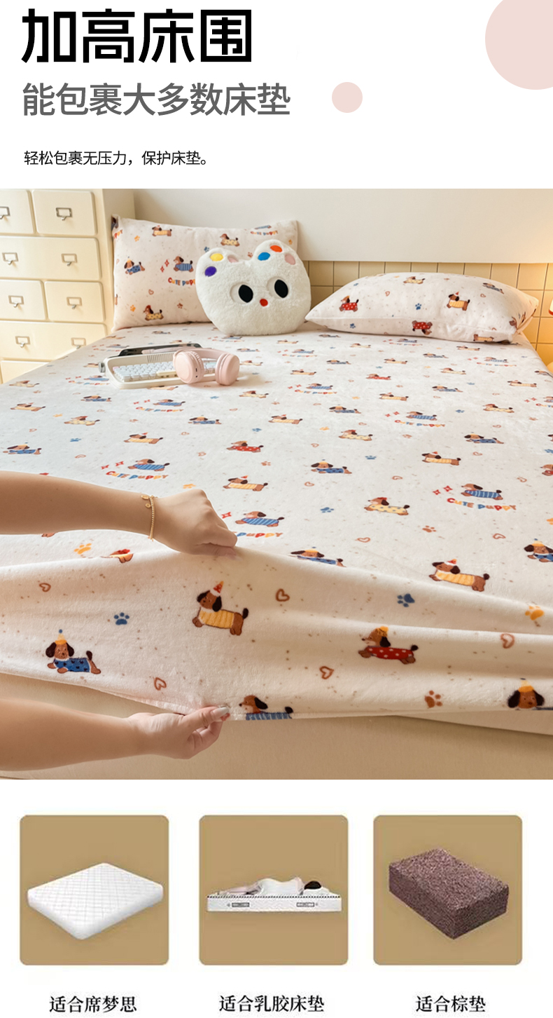 • 91家纺网 家纺一手货源 找家纺 爱彼家纺 2025新款高克重牛奶绒卡通床笠单床笠单件 小狗派对