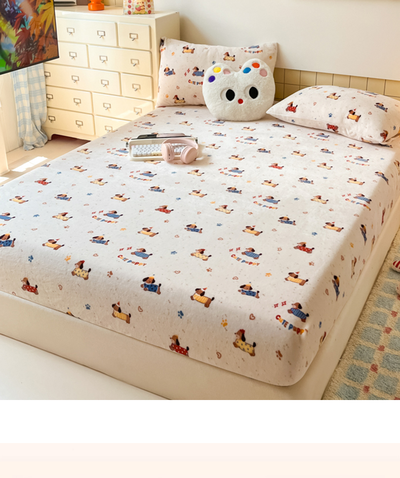 爱彼家纺 2025新款高克重牛奶绒卡通床笠单床笠单件 小狗派对