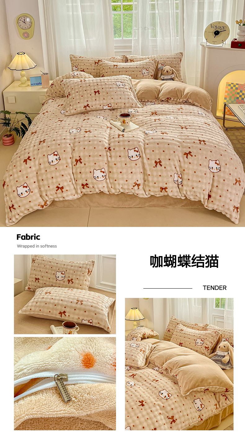 商品名称:梦纤绒 2025新款保暖舒适亲肤泡泡绒四件套 领结云纹棕