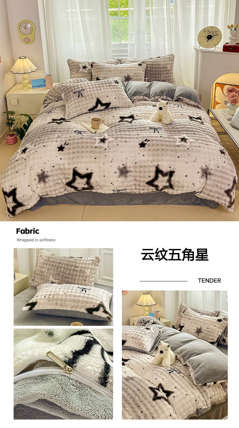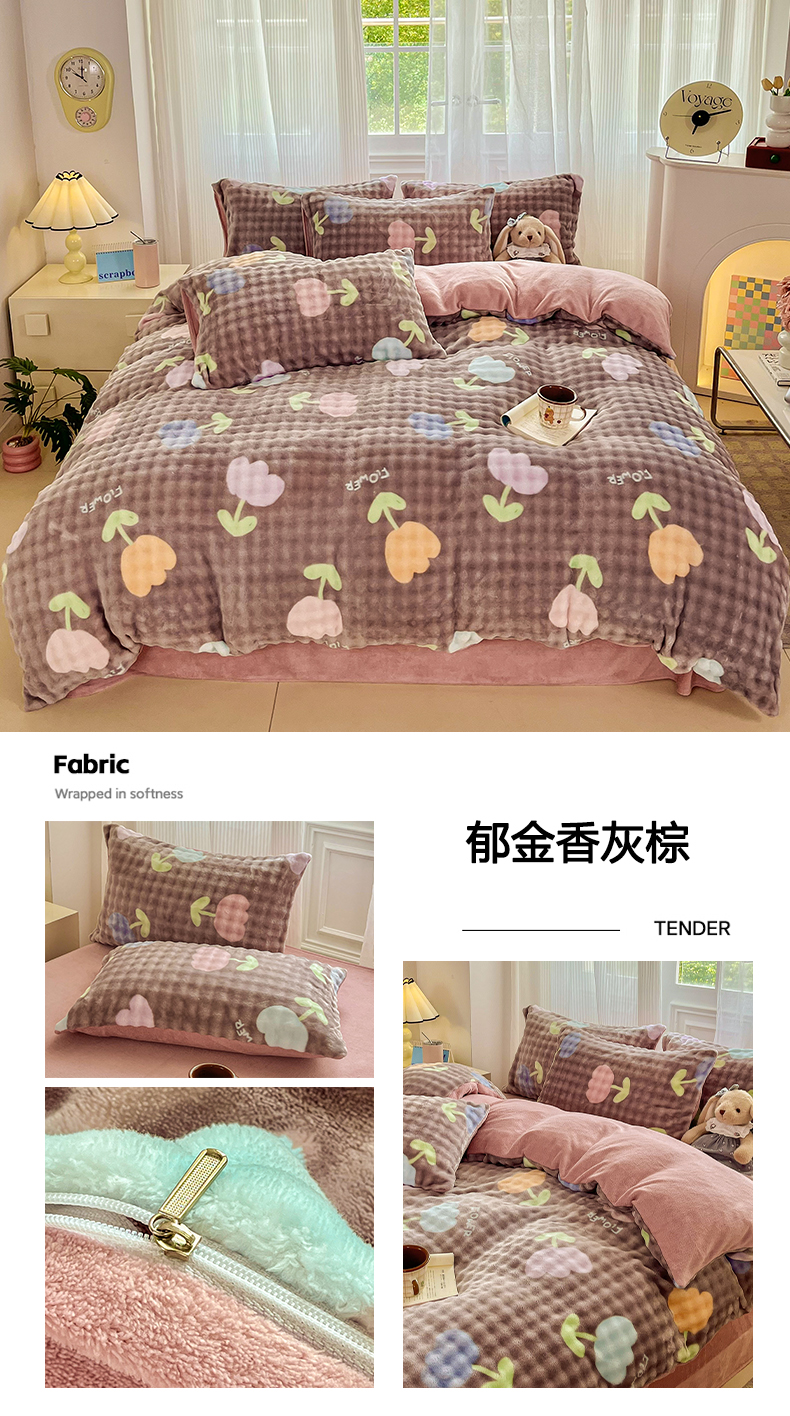 商品名称:梦纤绒 2025新款保暖舒适亲肤泡泡绒四件套 郁金香灰棕