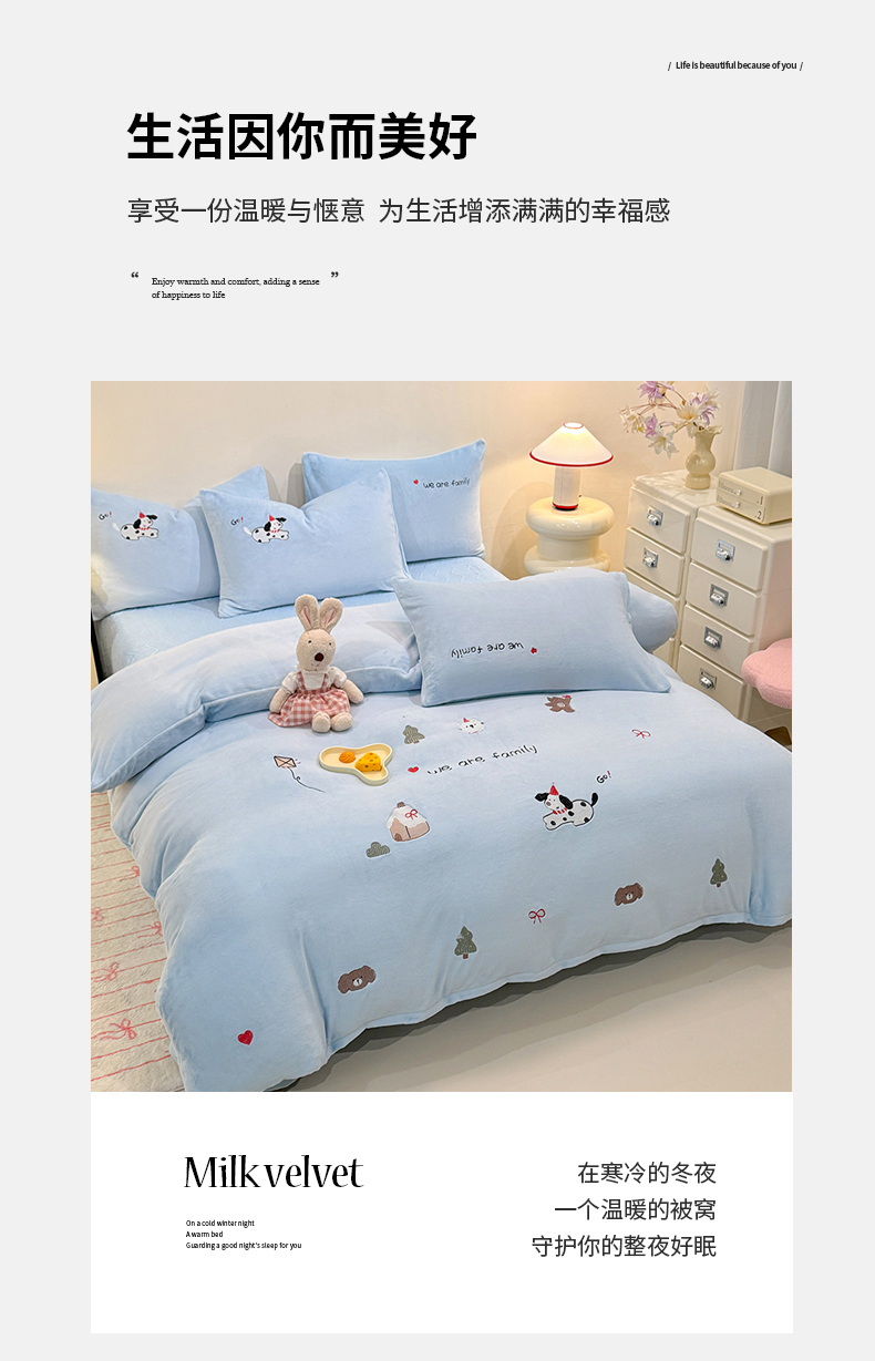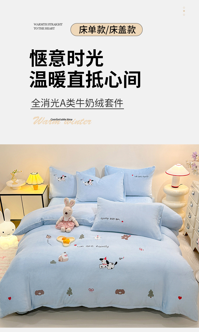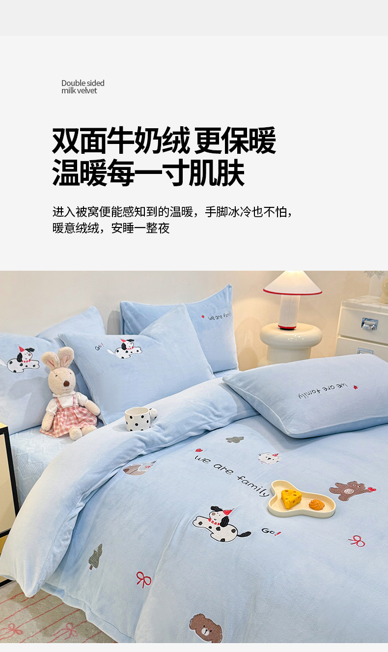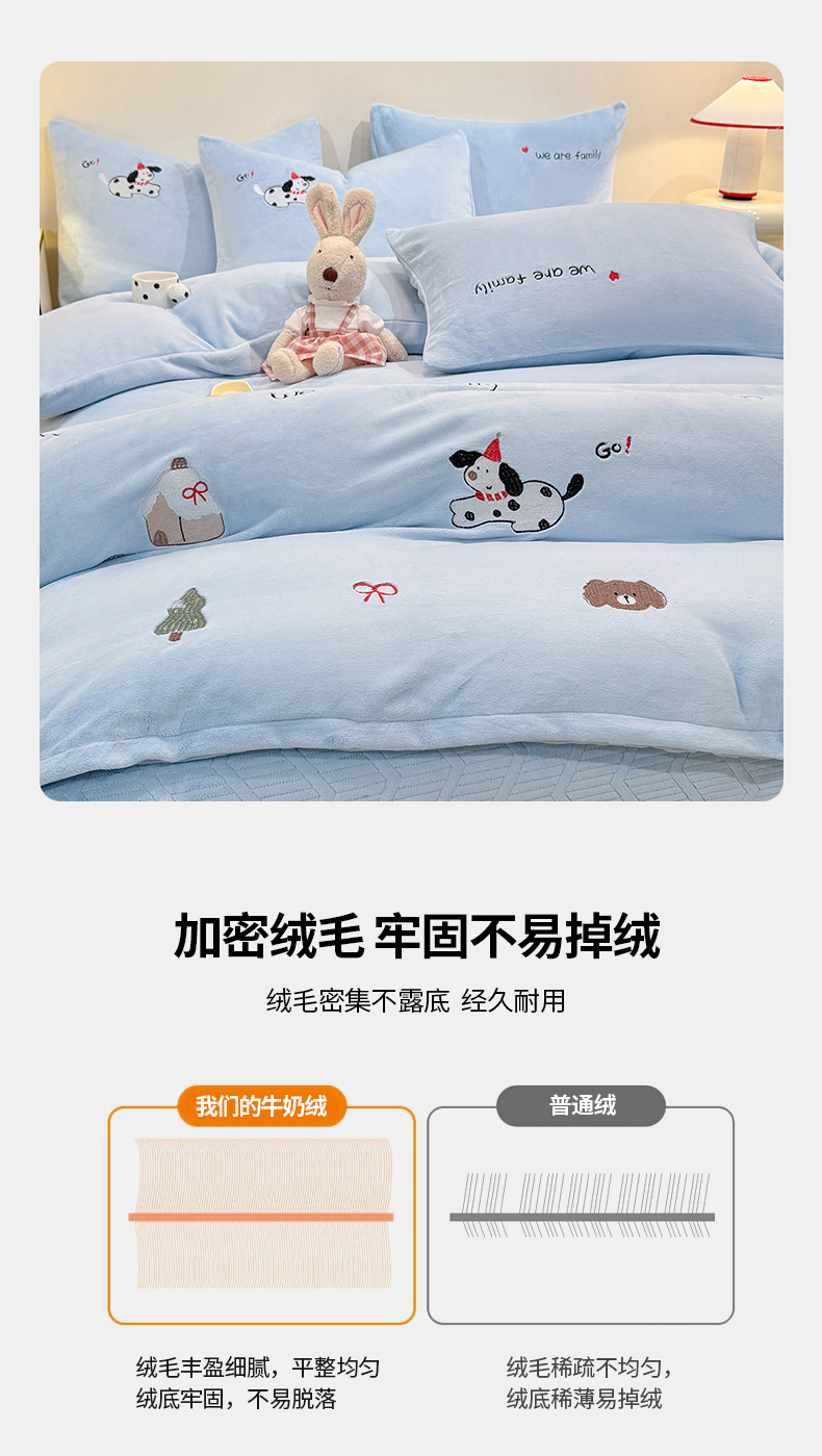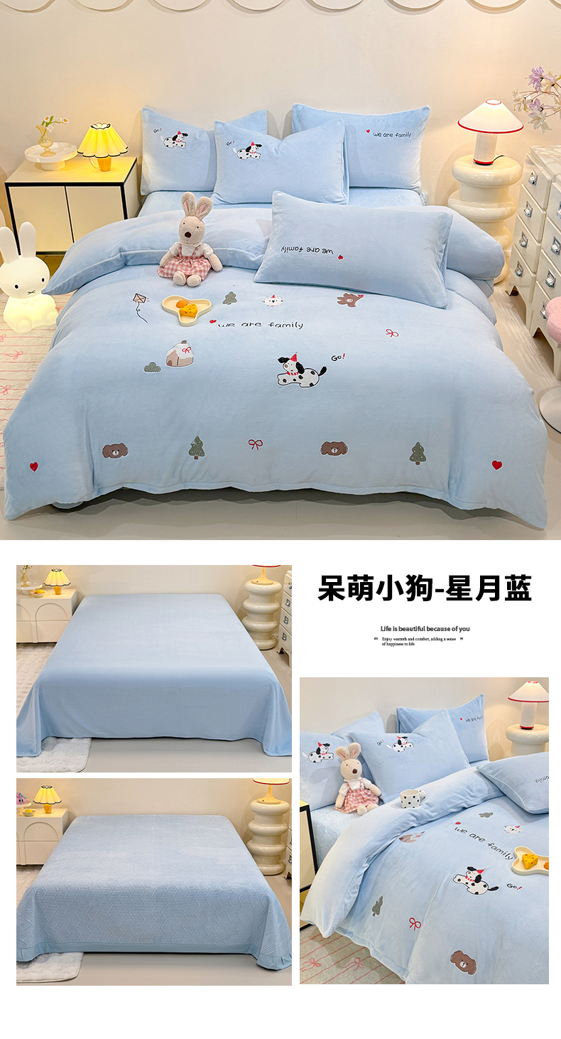 当前位置: 91家纺网 > 商品网购 > 床品套件 > 四件套 > 牛奶绒四件套 > 新方向 2025新款全消光A类刺绣牛奶绒四件套-呆萌小狗 呆萌小狗-星月蓝