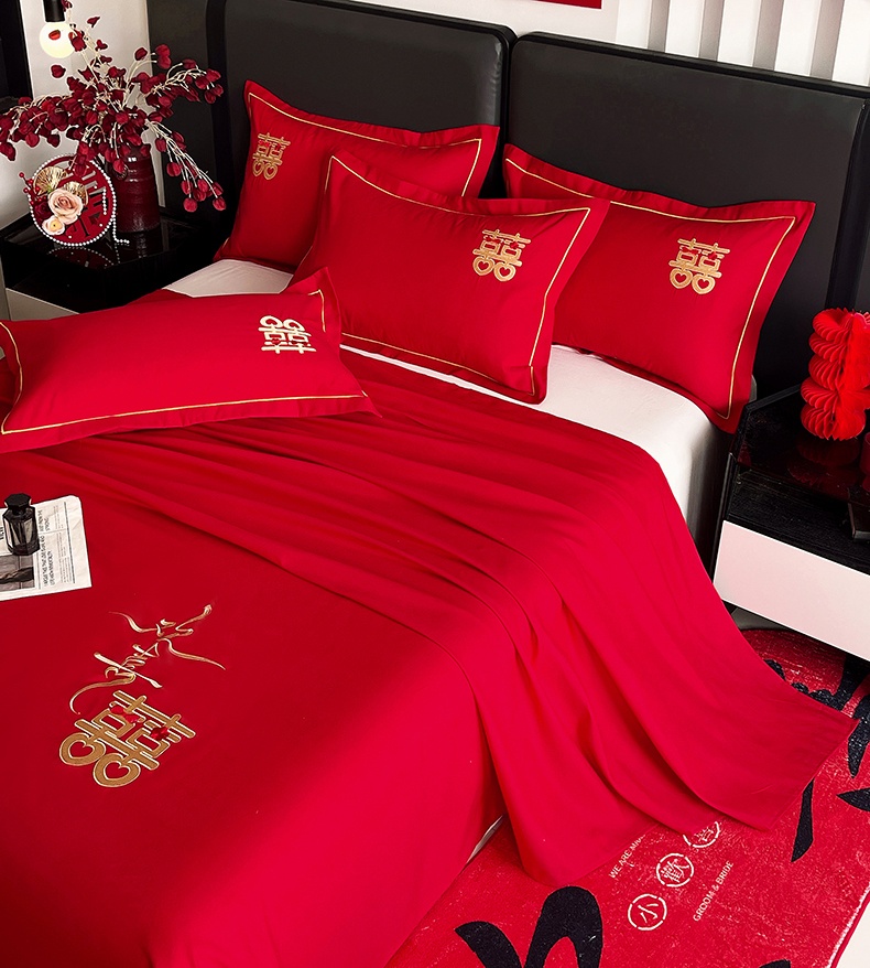(总)艾橙家纺 2025新款大红云朵棉刺绣婚庆系列单床单床单单件,百年好和,比翼双飞,花开并蒂,吾家有喜,喜结良缘,相爱一生,一生挚爱
