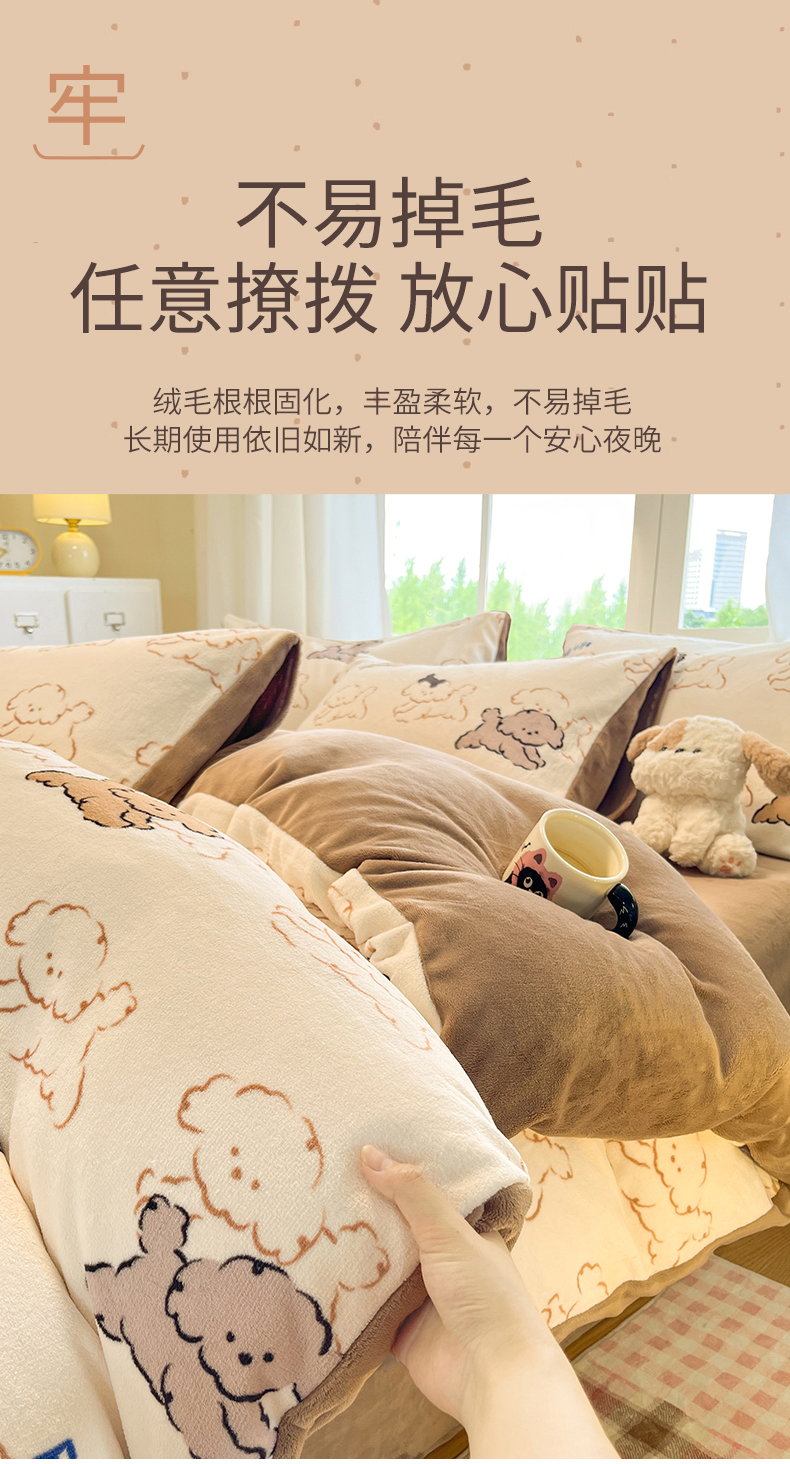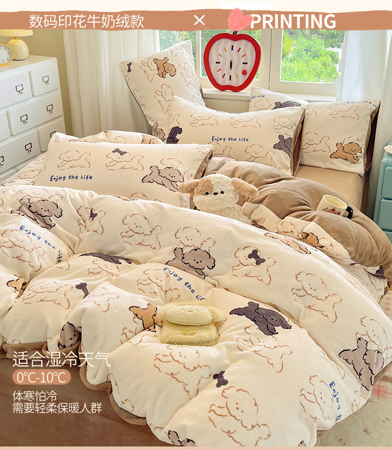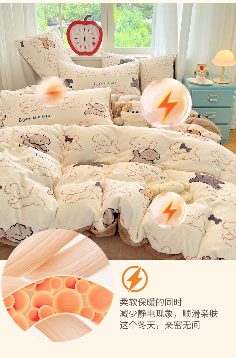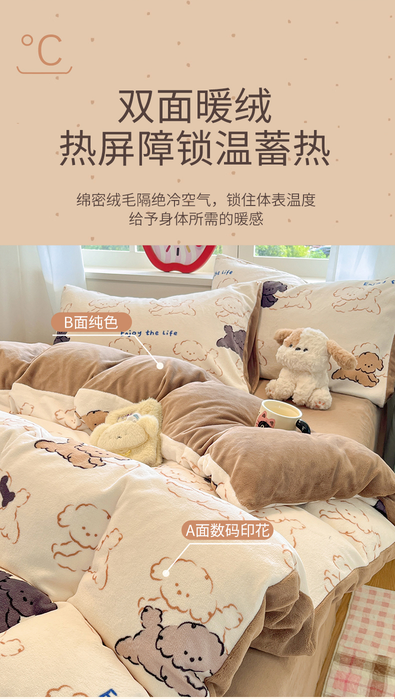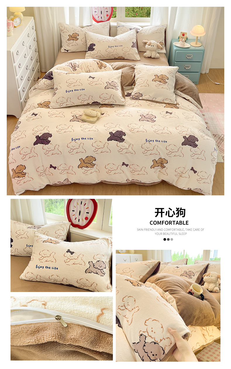 商品名称:云棉坊 2025新款高克重卡通牛奶绒四件套-印花系列 开心狗