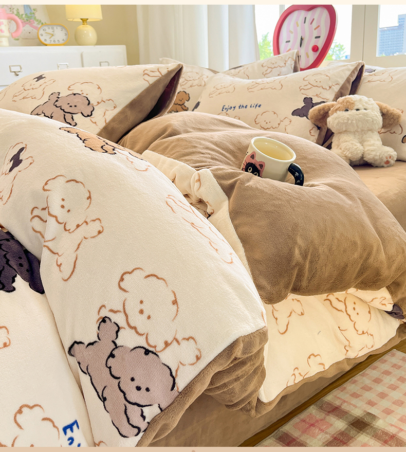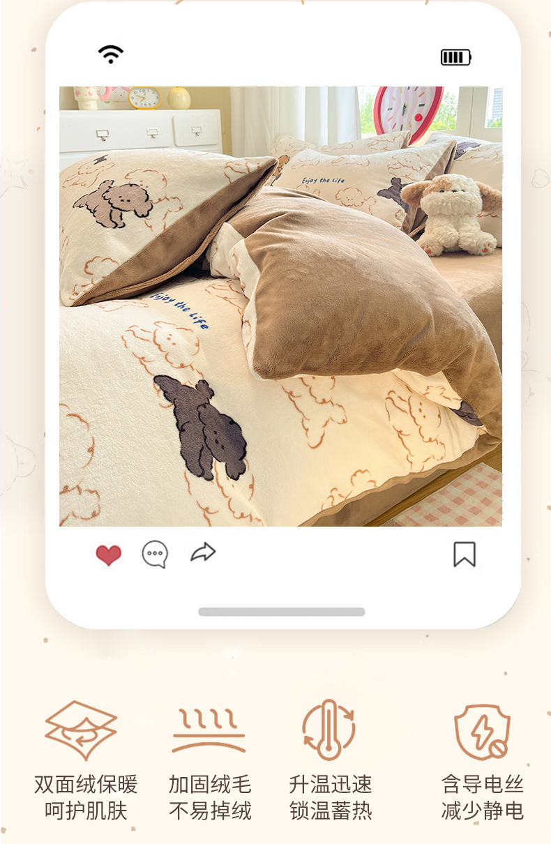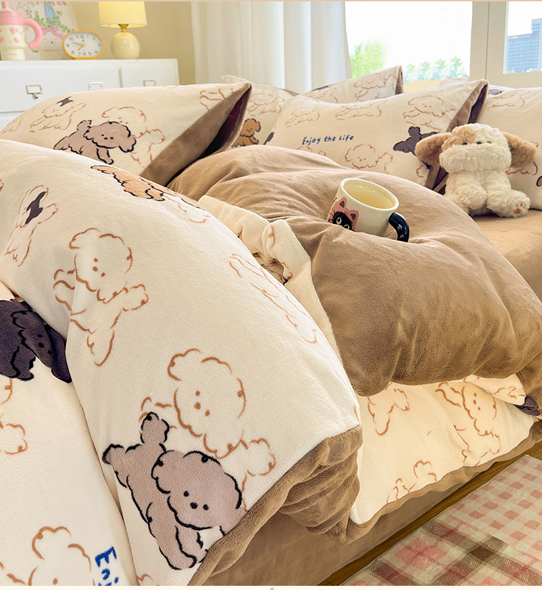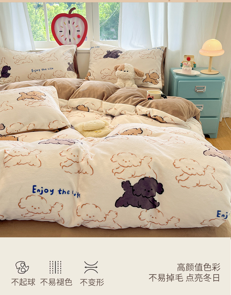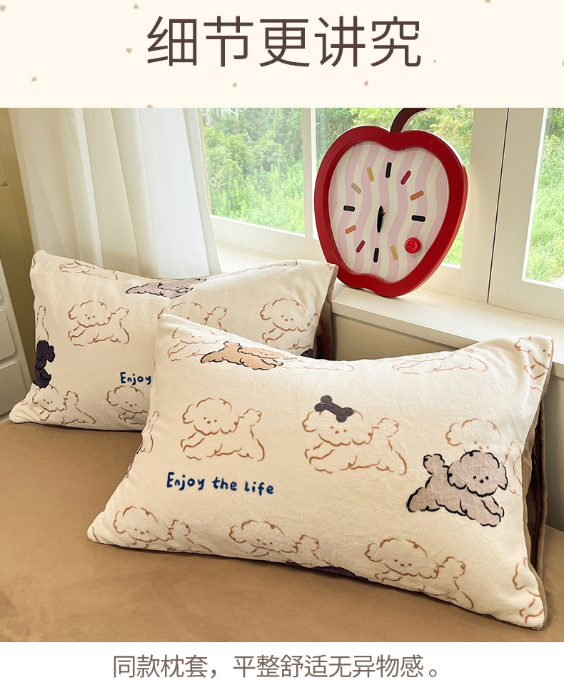 商品名称:云棉坊 2025新款高克重卡通牛奶绒四件套-印花系列 开心狗