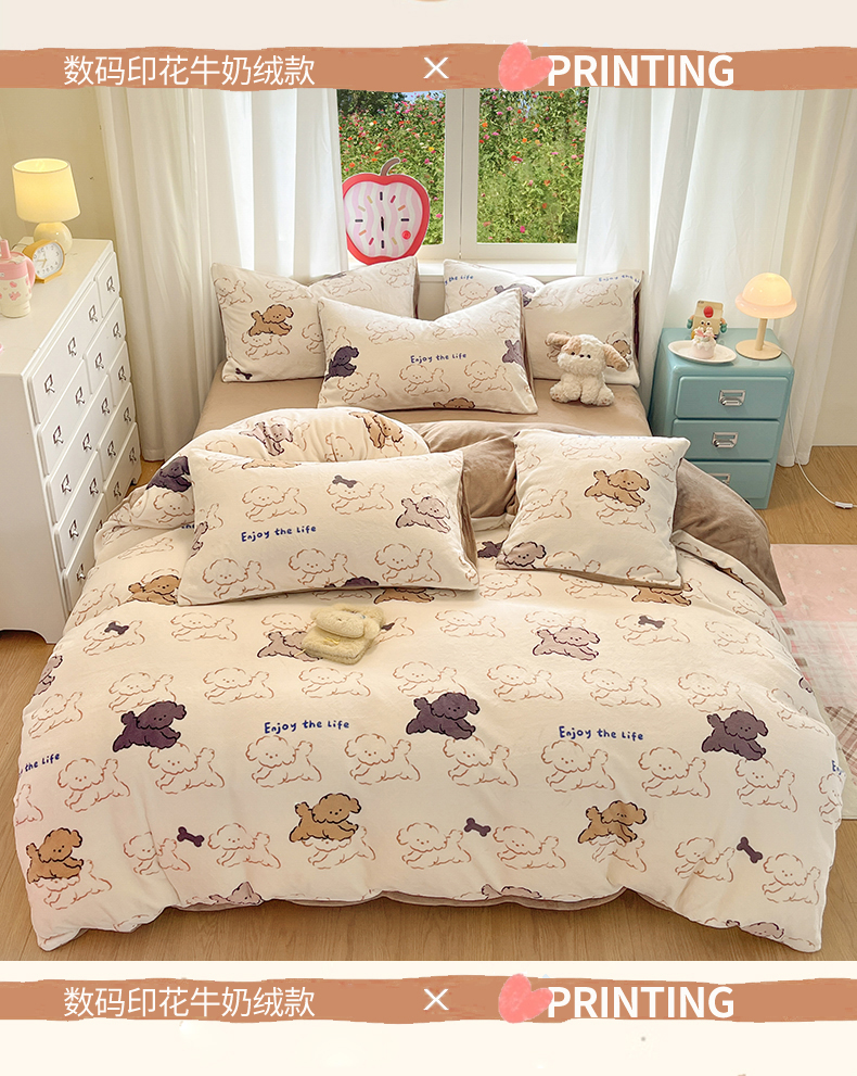 云棉坊 2025新款高克重卡通牛奶绒四件套-印花系列 开心狗