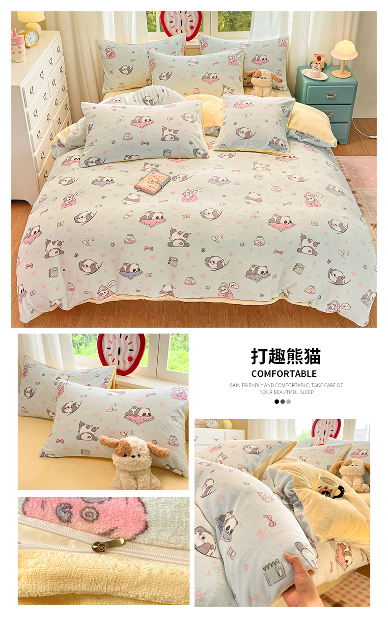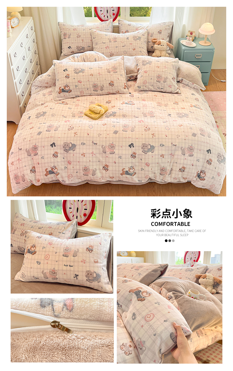 (总)云棉坊 2025新款高克重卡通牛奶绒四件套-印花系列,波点熊,彩点小象,打趣熊猫,粉色kt,格子兔,精灵仔,开心狗,甜美女孩,小甜露比,休闲一刻