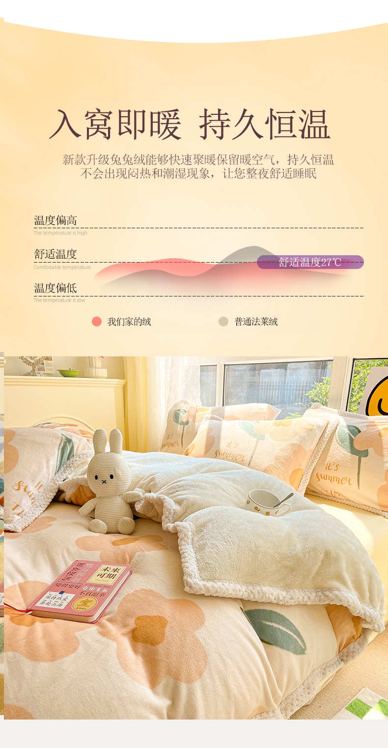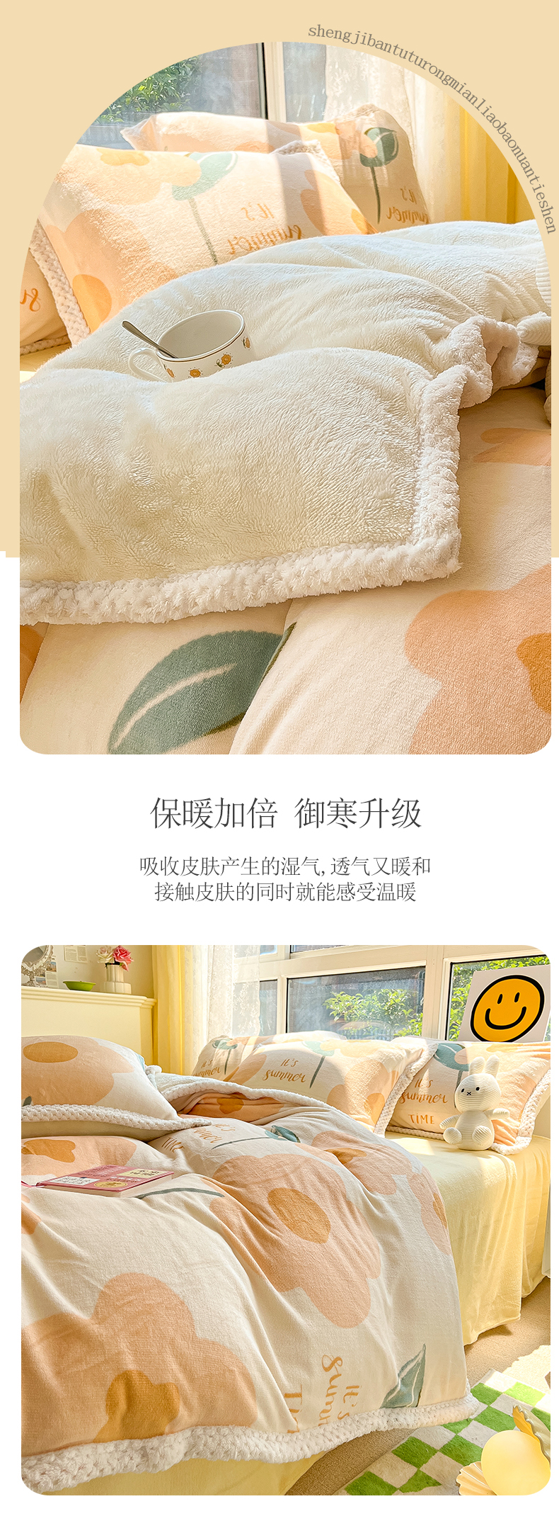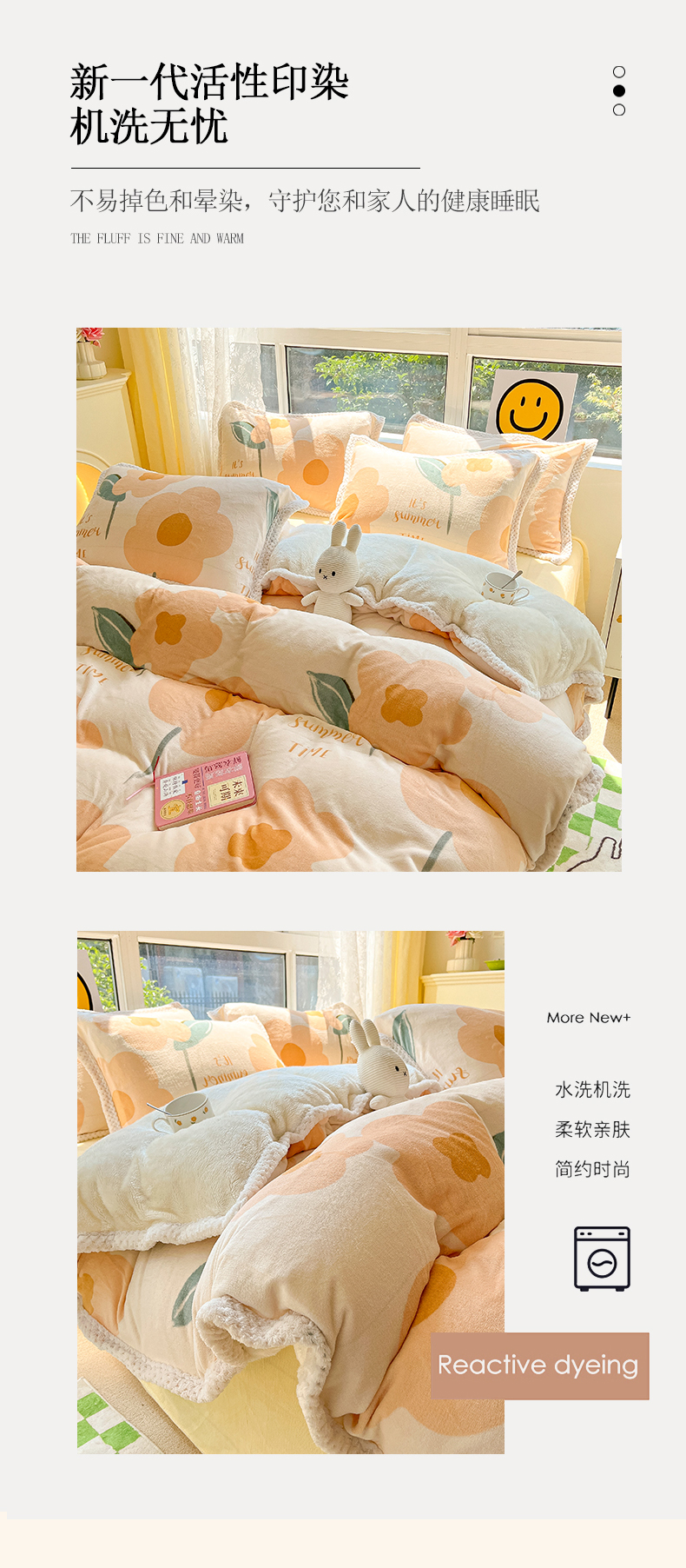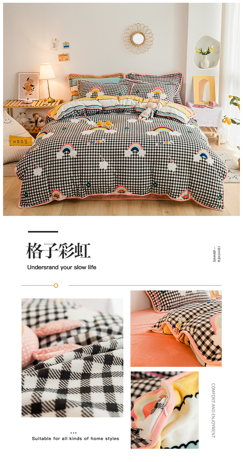 商品名称:琪格格纺织 2025新款A牛奶绒B兔兔绒保暖印花四件套 大包边绒微雨