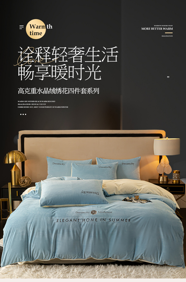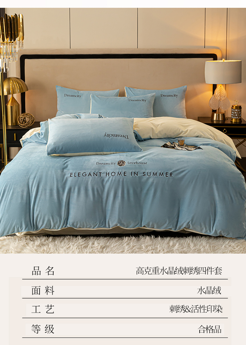 (总)云棉坊 2025新款高克重水晶绒绣花四件套-羽梦系列,羽梦-高级灰,羽梦-宾利蓝,羽梦-蜜桃粉,羽梦-奶白,羽梦-山灰,羽梦-天空兰