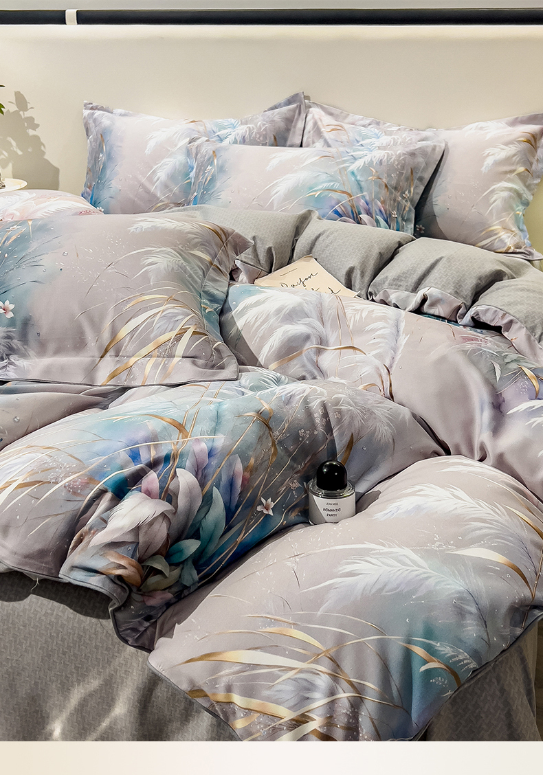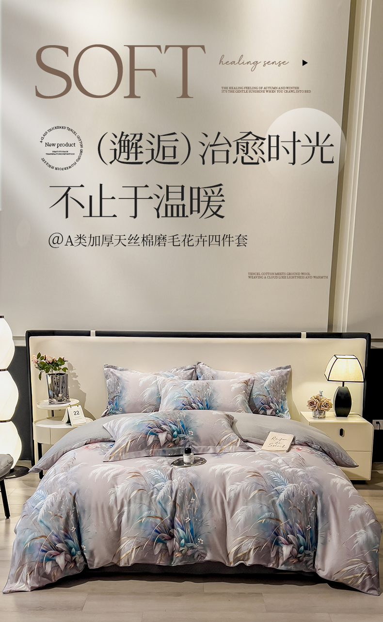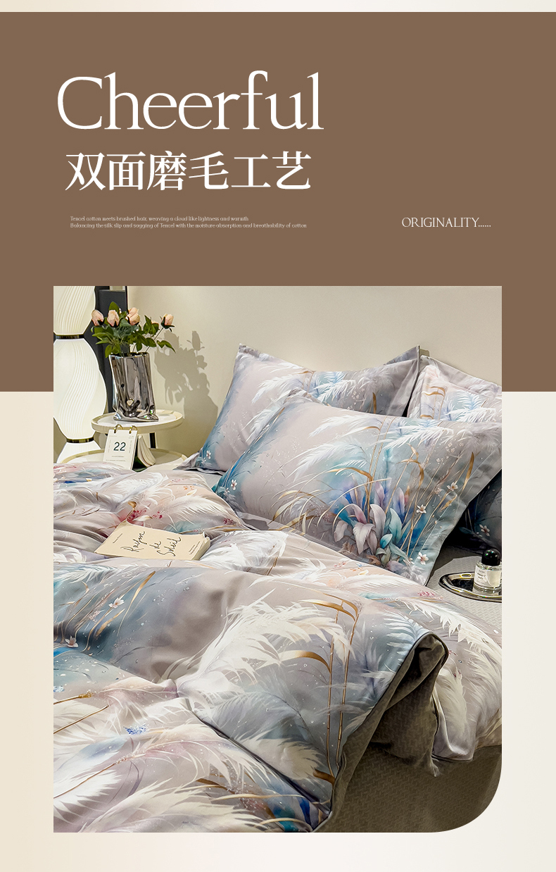 芃成家纺 2025新款A类加厚天丝棉磨毛花卉四件套 落英缤纷